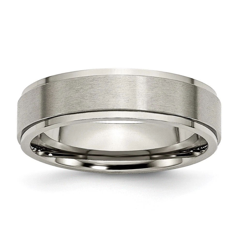 Finish:Polished & Brushed|Band Width:6 mm|Material: Primary:Titanium|Ring Fit:Standard|Sizeable:No|Thickness:< 2 mm|Item Weight U/M:gm|Width of Item:6 mm|Engravable:Yes|Packaging:Gift Pouch|Product Type:Jewelry|Jewelry Type:Rings|Sold By Unit:Each|Gender:Unisex|Material: Primary - Color:Grey|Ring Type:Wedding Bands|Edge Type:Ridged|Ring Shape:Flat All weights and measurements are approximate and may vary slightly from the listed information. Welcome to diamond_6720 Payments We accept all Ebay approved payment. Please sent the payment to us within 8 days after the auction has ended, or you will have unpaid case auto open by eBay. Shipping Policy We will ship all items within 1 business days of purchase during the work week (M-F) excluding holidays. If you order on Friday, your order will be shipped the following business day. Tracking will be provided when it becomes available. We will only ship to a PayPal Verified Address. Please make sure your address is current and correct. If the information does not match, your order may be canceled. Buyers are responsible for all customs, duties and taxes for your respective countries. Delivery times for International Shipping will vary. California Buyers Pay 9.0% Tax on all orders. case auto open by eBay. Return Policy & Exchange Returns or Exchange are accepted. Buyer must contact us within 30 days after the item is received. Item must be returned in unworn and resalable condition. We will only issue a refund for the purchase price, excluding any shipping fees. If we are at fault, we will provide a full refund. Buyer is responsible for all return shipping costs. BUYERS FEEDBACK If you have any concerns regarding your purchase, please contact us via eBay Message, we assure you that a satisfactory resolution will be reached. Your feedback is very important to us Do remember to give us 5 star rating(*****) if you are satisfied with our product & service .
