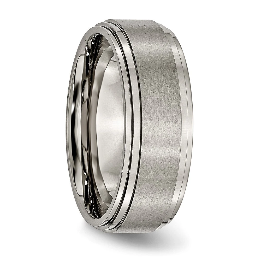 Titanium Brushed Center 8mm Double Step Ridged Edge Band Ring Size 10