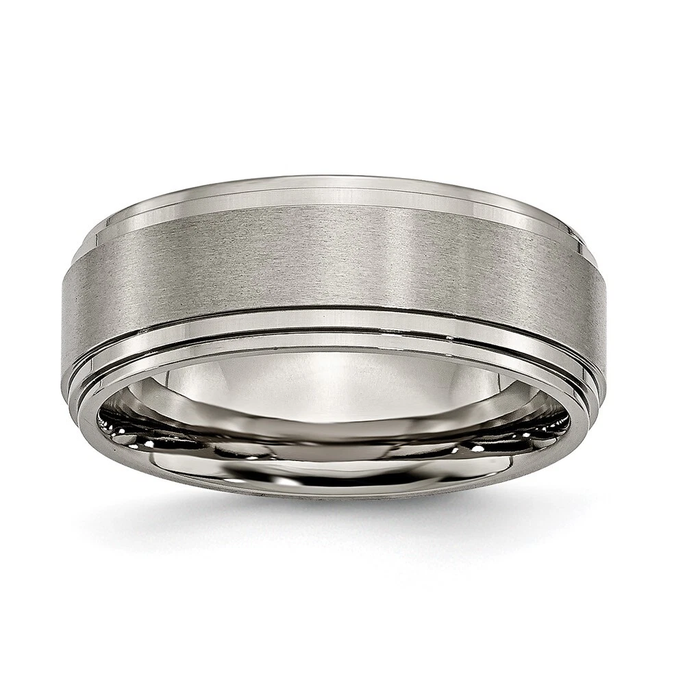 Finish:Polished & Brushed|Band Width:8 mm|Material: Primary:Titanium|Ring Fit:Comfort|Sizeable:No|Thickness:< 2.5 mm|Item Weight U/M:gm|Width of Item:8 mm|Engravable:Yes|Packaging:Gift Pouch|Product Type:Jewelry|Jewelry Type:Rings|Sold By Unit:Each|Gender:Unisex|Texture:Satin|Material: Primary - Color:Grey|Ring Type:Wedding Bands|Edge Type:Ridged All weights and measurements are approximate and may vary slightly from the listed information. Welcome to diamond_6720 Payments We accept all Ebay approved payment. Please sent the payment to us within 8 days after the auction has ended, or you will have unpaid case auto open by eBay. Shipping Policy We will ship all items within 1 business days of purchase during the work week (M-F) excluding holidays. If you order on Friday, your order will be shipped the following business day. Tracking will be provided when it becomes available. We will only ship to a PayPal Verified Address. Please make sure your address is current and correct. If the information does not match, your order may be canceled. Buyers are responsible for all customs, duties and taxes for your respective countries. Delivery times for International Shipping will vary. California Buyers Pay 9.0% Tax on all orders. case auto open by eBay. Return Policy & Exchange Returns or Exchange are accepted. Buyer must contact us within 30 days after the item is received. Item must be returned in unworn and resalable condition. We will only issue a refund for the purchase price, excluding any shipping fees. If we are at fault, we will provide a full refund. Buyer is responsible for all return shipping costs. BUYERS FEEDBACK If you have any concerns regarding your purchase, please contact us via eBay Message, we assure you that a satisfactory resolution will be reached. Your feedback is very important to us Do remember to give us 5 star rating(*****) if you are satisfied with our product & service .
