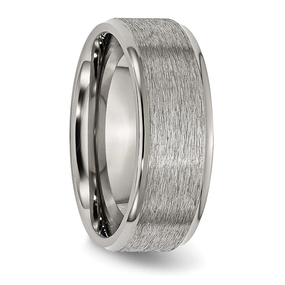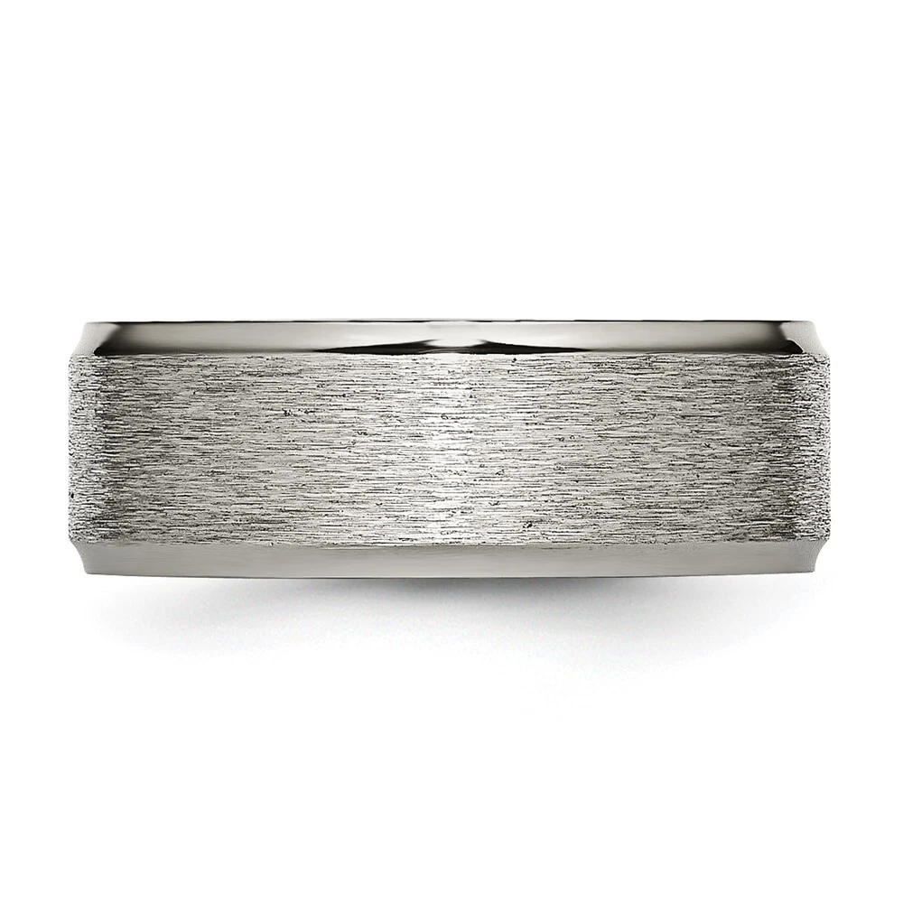 Titanium Brushed Center 8mm Ridged Edge Band Ring Size 12 for Men 4.57gm