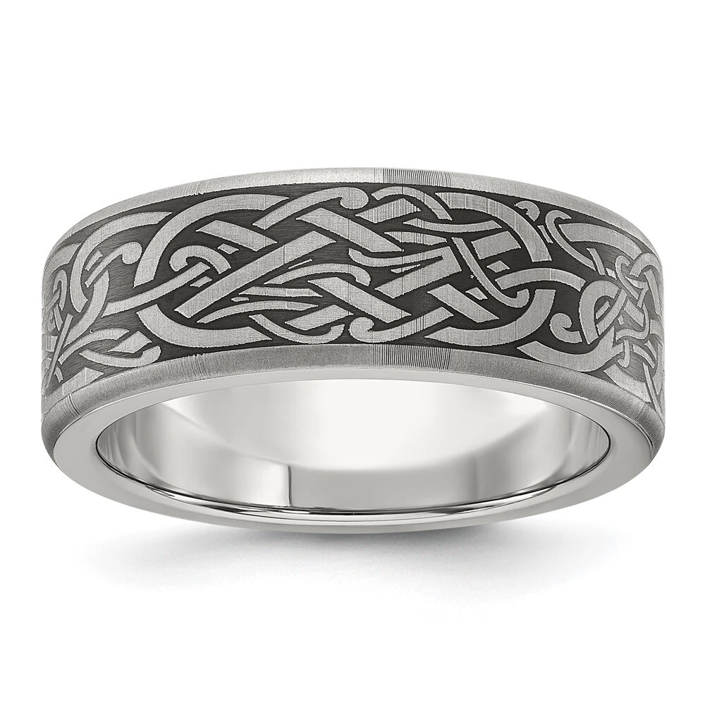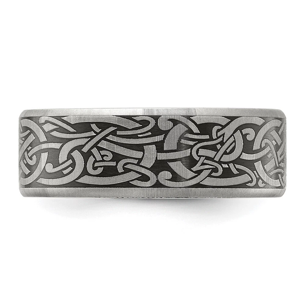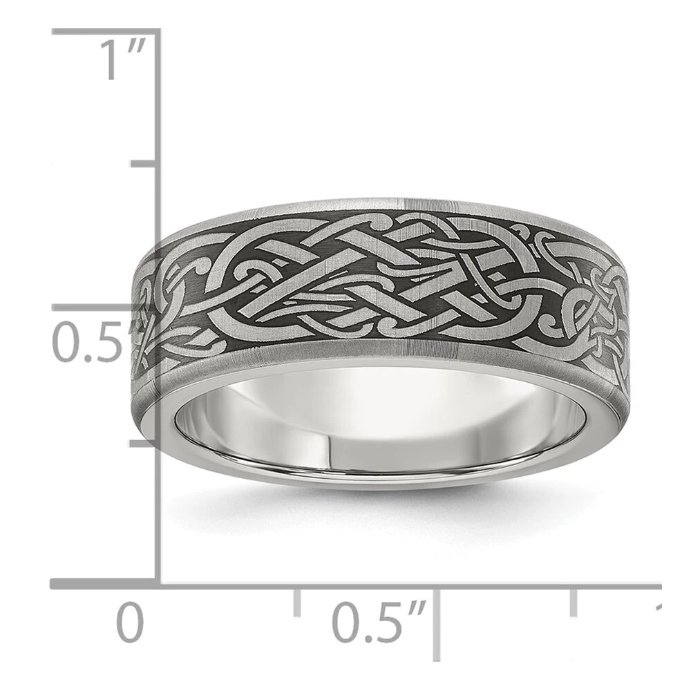 Titanium Brushed Laser Design 8mm Band Ring Size 7 for Men 5.28gm