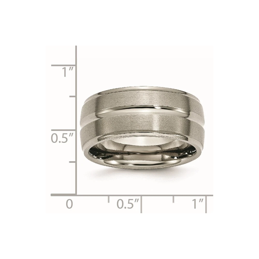 Titanium Brushed Polished 10mm Grooved Edge Band Ring Size 12