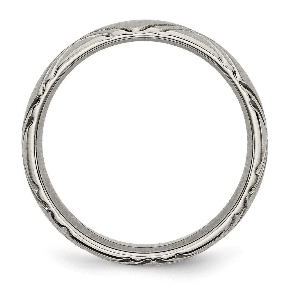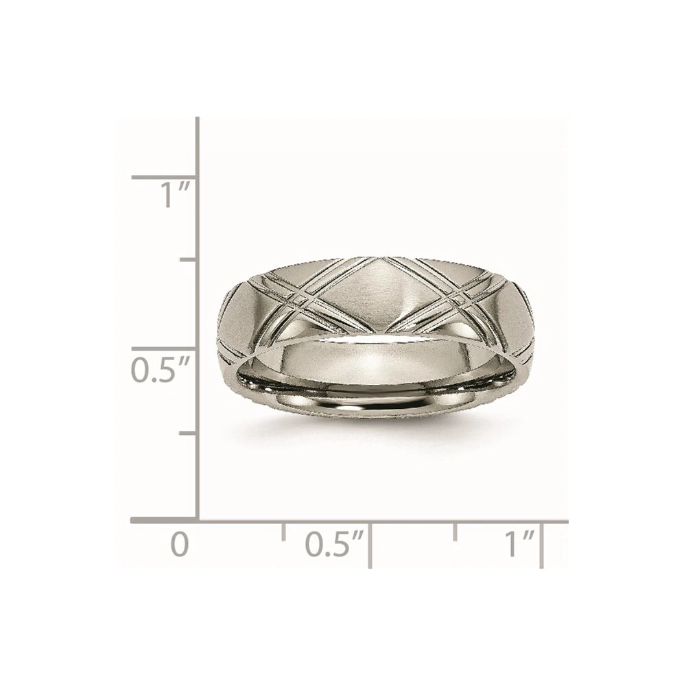 Titanium Brushed and Polished 6mm Criss-cross Design Band Ring Size 7