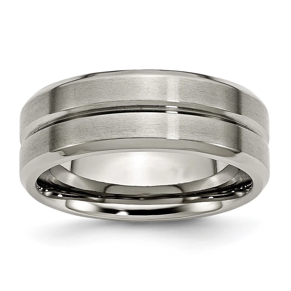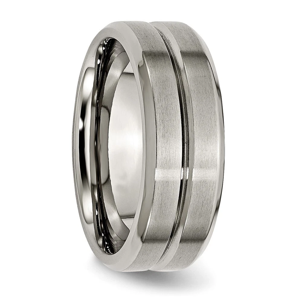 Finish:Polished & Brushed|Band Width:8 mm|Material: Primary:Titanium|Ring Fit:Comfort|Sizeable:No|Thickness:< 2.5 mm|Item Weight U/M:gm|Width of Item:8 mm|Engravable:Yes|Packaging:Gift Pouch|Product Type:Jewelry|Jewelry Type:Rings|Sold By Unit:Each|Gender:Unisex|Texture:Grooved|Material: Primary - Color:Grey|Ring Type:Wedding Bands|Edge Type:Beveled All weights and measurements are approximate and may vary slightly from the listed information. Welcome to diamond_6720 Payments We accept all Ebay approved payment. Please sent the payment to us within 8 days after the auction has ended, or you will have unpaid case auto open by eBay. Shipping Policy We will ship all items within 1 business days of purchase during the work week (M-F) excluding holidays. If you order on Friday, your order will be shipped the following business day. Tracking will be provided when it becomes available. We will only ship to a PayPal Verified Address. Please make sure your address is current and correct. If the information does not match, your order may be canceled. Buyers are responsible for all customs, duties and taxes for your respective countries. Delivery times for International Shipping will vary. California Buyers Pay 9.0% Tax on all orders. case auto open by eBay. Return Policy & Exchange Returns or Exchange are accepted. Buyer must contact us within 30 days after the item is received. Item must be returned in unworn and resalable condition. We will only issue a refund for the purchase price, excluding any shipping fees. If we are at fault, we will provide a full refund. Buyer is responsible for all return shipping costs. BUYERS FEEDBACK If you have any concerns regarding your purchase, please contact us via eBay Message, we assure you that a satisfactory resolution will be reached. Your feedback is very important to us Do remember to give us 5 star rating(*****) if you are satisfied with our product & service .