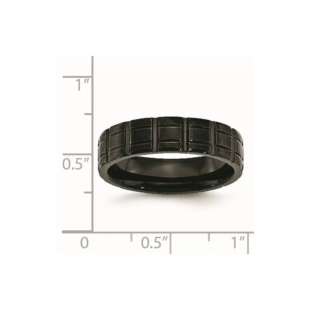 Titanium Brushed and Polished Black IP-plated 6mm Notched Band Ring Size 8
