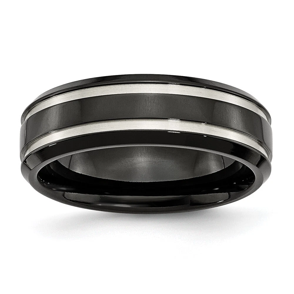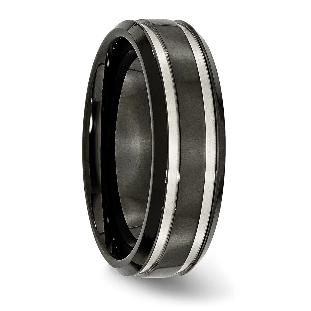 Finish:Polished|Plating:IP-Plated|Band Width:7 mm|Material: Primary:Titanium|Ring Fit:Comfort|Sizeable:No|Thickness:< 2.5 mm|Item Weight U/M:gm|Width of Item:7 mm|Engravable:Yes|Packaging:Gift Pouch|Product Type:Jewelry|Jewelry Type:Rings|Sold By Unit:Each|Gender:Unisex|Texture:Grooved|Material: Primary - Color:Grey|Ring Type:Wedding Bands|Edge Type:Grooved|Plating Color:Black|Ring Shape:Domed All weights and measurements are approximate and may vary slightly from the listed information. Welcome to diamond_6720 Payments We accept all Ebay approved payment. Please sent the payment to us within 8 days after the auction has ended, or you will have unpaid case auto open by eBay. Shipping Policy We will ship all items within 1 business days of purchase during the work week (M-F) excluding holidays. If you order on Friday, your order will be shipped the following business day. Tracking will be provided when it becomes available. We will only ship to a PayPal Verified Address. Please make sure your address is current and correct. If the information does not match, your order may be canceled. Buyers are responsible for all customs, duties and taxes for your respective countries. Delivery times for International Shipping will vary. California Buyers Pay 9.0% Tax on all orders. case auto open by eBay. Return Policy & Exchange Returns or Exchange are accepted. Buyer must contact us within 30 days after the item is received. Item must be returned in unworn and resalable condition. We will only issue a refund for the purchase price, excluding any shipping fees. If we are at fault, we will provide a full refund. Buyer is responsible for all return shipping costs. BUYERS FEEDBACK If you have any concerns regarding your purchase, please contact us via eBay Message, we assure you that a satisfactory resolution will be reached. Your feedback is very important to us Do remember to give us 5 star rating(*****) if you are satisfied with our product & service .