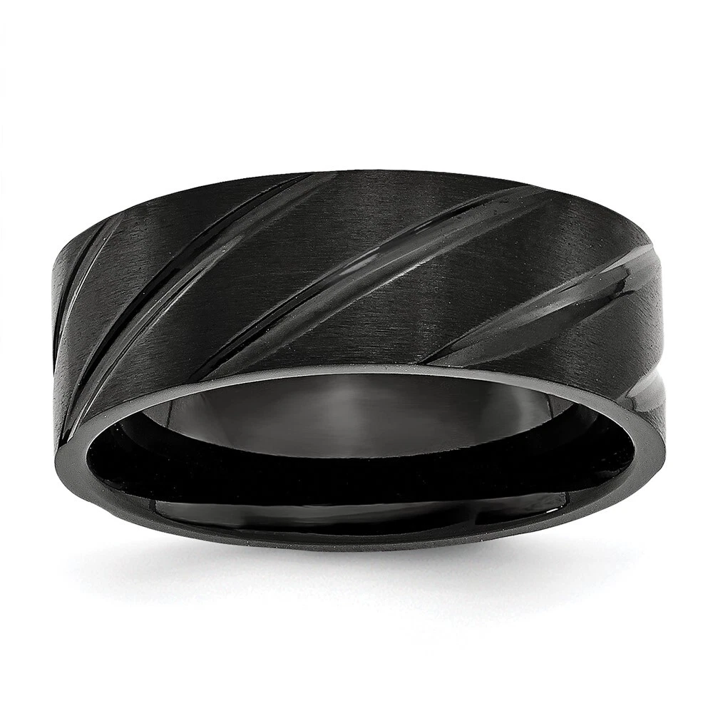 Finish:Polished & Brushed|Plating:IP-Plated|Band Width:8 mm|Material: Primary:Titanium|Ring Fit:Standard|Sizeable:No|Thickness:< 2 mm|Item Weight U/M:gm|Width of Item:8 mm|Engravable:Yes|Packaging:Gift Pouch|Product Type:Jewelry|Jewelry Type:Rings|Sold By Unit:Each|Gender:Unisex|Texture:Grooved|Material: Primary - Color:Grey|Ring Type:Wedding Bands|Edge Type:Flat|Plating Color:Black|Ring Shape:Flat All weights and measurements are approximate and may vary slightly from the listed information. Welcome to diamond_6720 Payments We accept all Ebay approved payment. Please sent the payment to us within 8 days after the auction has ended, or you will have unpaid case auto open by eBay. Shipping Policy We will ship all items within 1 business days of purchase during the work week (M-F) excluding holidays. If you order on Friday, your order will be shipped the following business day. Tracking will be provided when it becomes available. We will only ship to a PayPal Verified Address. Please make sure your address is current and correct. If the information does not match, your order may be canceled. Buyers are responsible for all customs, duties and taxes for your respective countries. Delivery times for International Shipping will vary. California Buyers Pay 9.0% Tax on all orders. case auto open by eBay. Return Policy & Exchange Returns or Exchange are accepted. Buyer must contact us within 30 days after the item is received. Item must be returned in unworn and resalable condition. We will only issue a refund for the purchase price, excluding any shipping fees. If we are at fault, we will provide a full refund. Buyer is responsible for all return shipping costs. BUYERS FEEDBACK If you have any concerns regarding your purchase, please contact us via eBay Message, we assure you that a satisfactory resolution will be reached. Your feedback is very important to us Do remember to give us 5 star rating(*****) if you are satisfied with our product & service .