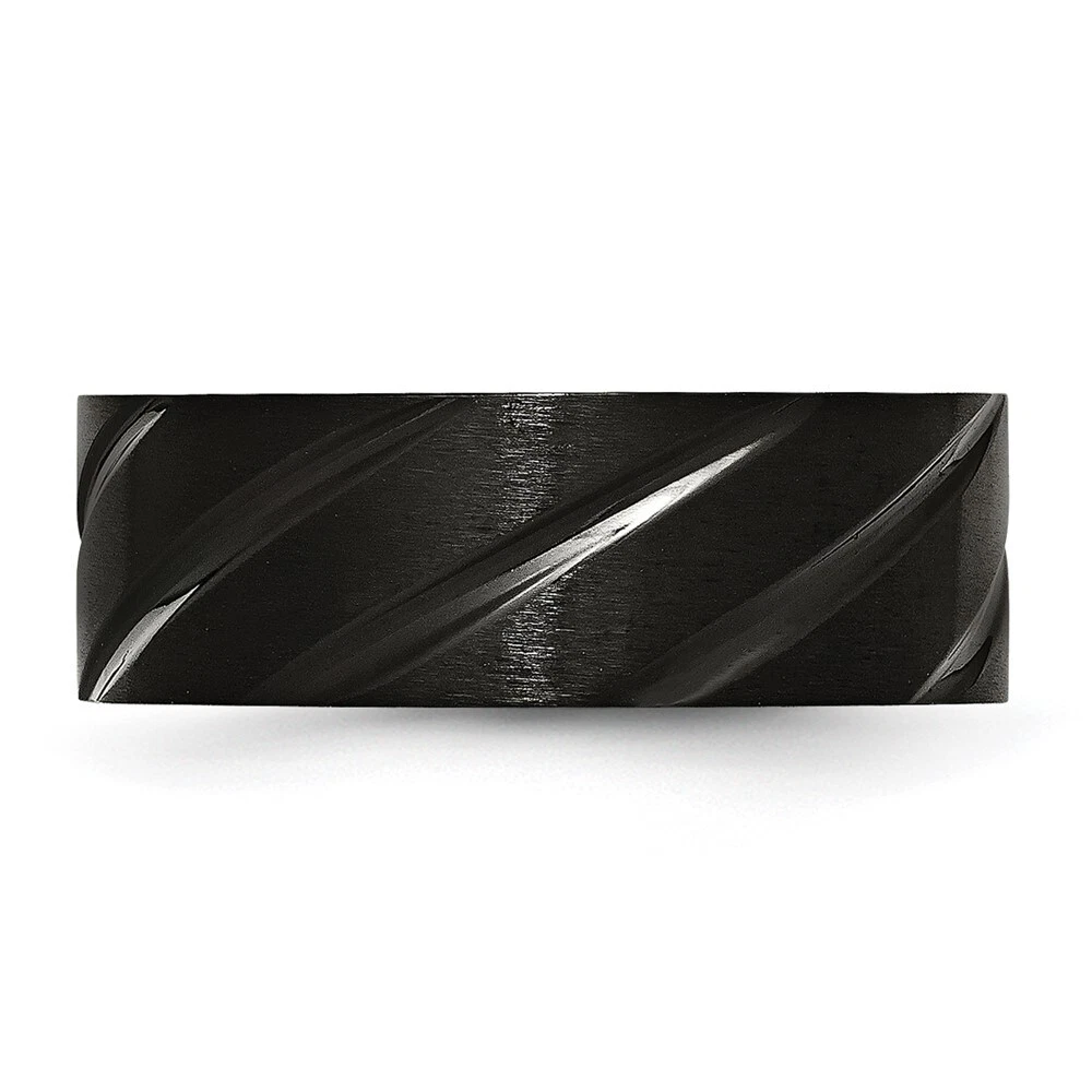 Titanium Brushed and Polished Black IP-plated Swirl Design 8mm Band Ring Size 8
