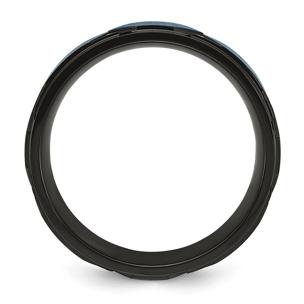 Titanium Brushed and Polished Black and Blue IP-plated 8mm Band Ring Size 11