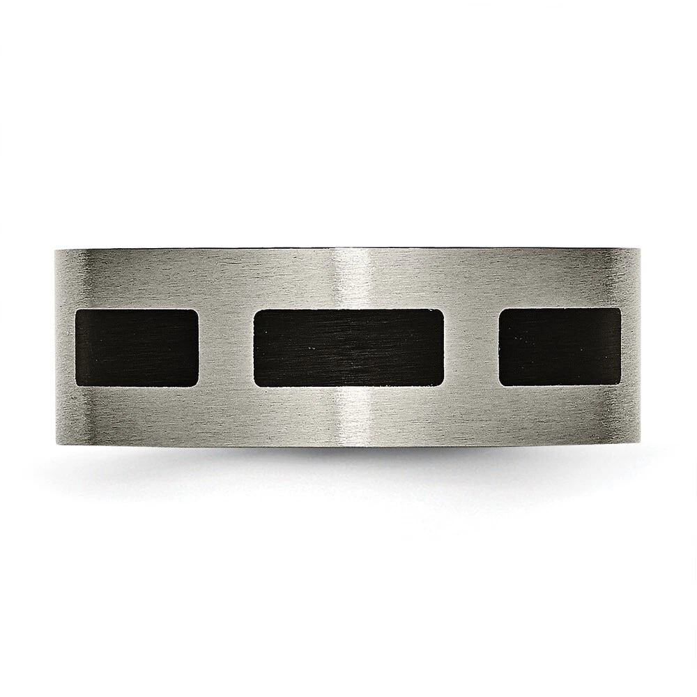 Titanium Brushed with Black Rubber 8mm Flat Band Ring Size 12