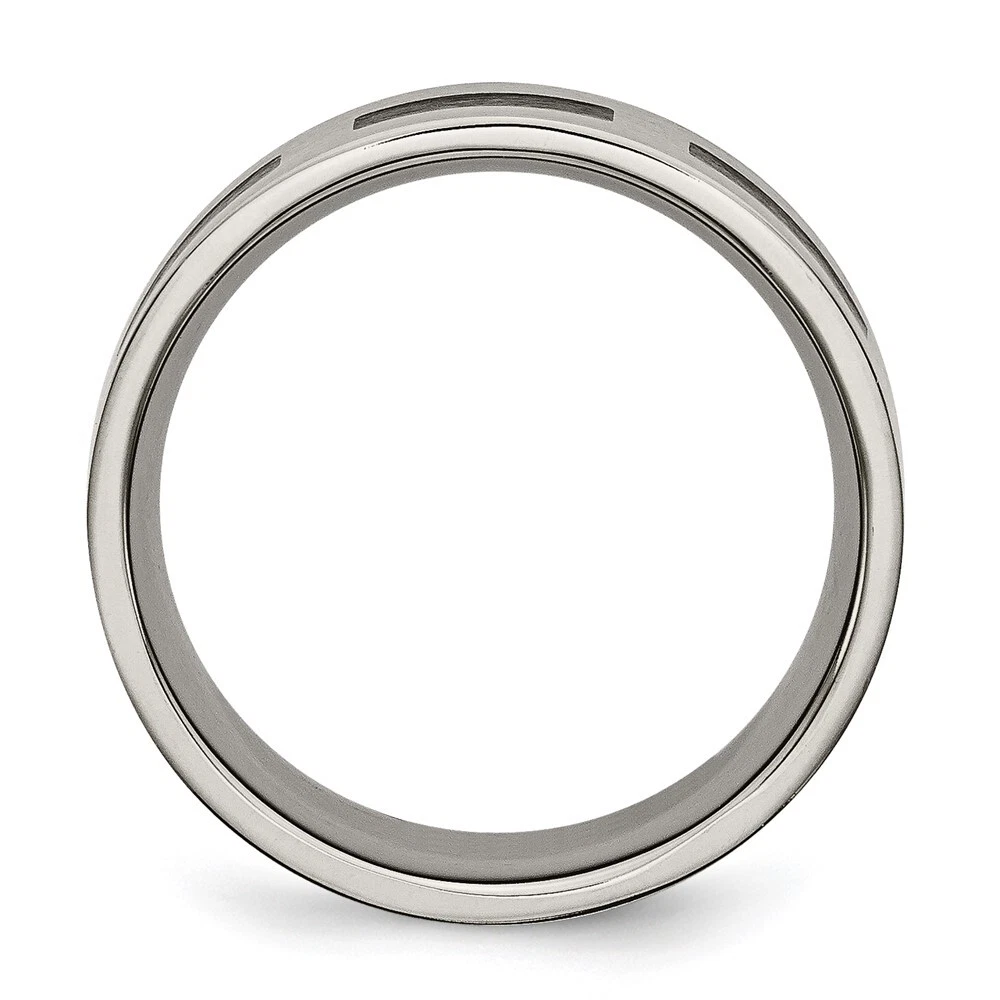 Finish:Brushed|Material: Accent Color 1:Black|Band Width:8 mm|Material: Primary:Titanium|Ring Fit:Standard|Sizeable:No|Thickness:< 2 mm|Item Weight U/M:gm|Width of Item:8 mm|Material: Other:Rubber|Engravable:Yes|Packaging:Gift Pouch|Product Type:Jewelry|Jewelry Type:Rings|Sold By Unit:Each|Gender:Unisex|Material: Primary - Color:Grey|Ring Type:Wedding Bands|Edge Type:Flat|Ring Shape:Flat All weights and measurements are approximate and may vary slightly from the listed information. Welcome to diamond_6720 Payments We accept all Ebay approved payment. Please sent the payment to us within 8 days after the auction has ended, or you will have unpaid case auto open by eBay. Shipping Policy We will ship all items within 1 business days of purchase during the work week (M-F) excluding holidays. If you order on Friday, your order will be shipped the following business day. Tracking will be provided when it becomes available. We will only ship to a PayPal Verified Address. Please make sure your address is current and correct. If the information does not match, your order may be canceled. Buyers are responsible for all customs, duties and taxes for your respective countries. Delivery times for International Shipping will vary. California Buyers Pay 9.0% Tax on all orders. case auto open by eBay. Return Policy & Exchange Returns or Exchange are accepted. Buyer must contact us within 30 days after the item is received. Item must be returned in unworn and resalable condition. We will only issue a refund for the purchase price, excluding any shipping fees. If we are at fault, we will provide a full refund. Buyer is responsible for all return shipping costs. BUYERS FEEDBACK If you have any concerns regarding your purchase, please contact us via eBay Message, we assure you that a satisfactory resolution will be reached. Your feedback is very important to us Do remember to give us 5 star rating(*****) if you are satisfied with our product & service .