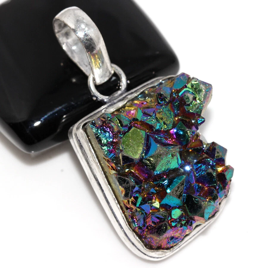 Titanium Druzy 925 Silver Plated Gemstone Pendant 1.5" Fast-Selling Gift JW