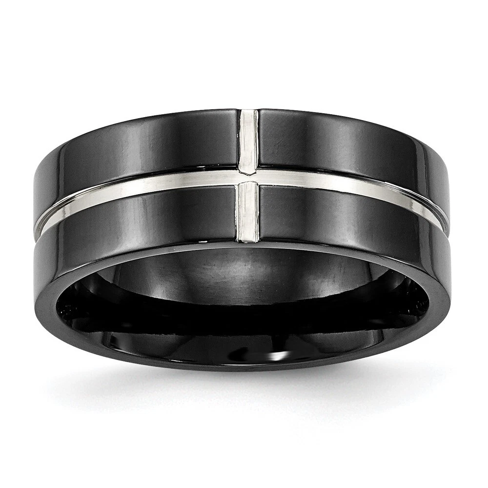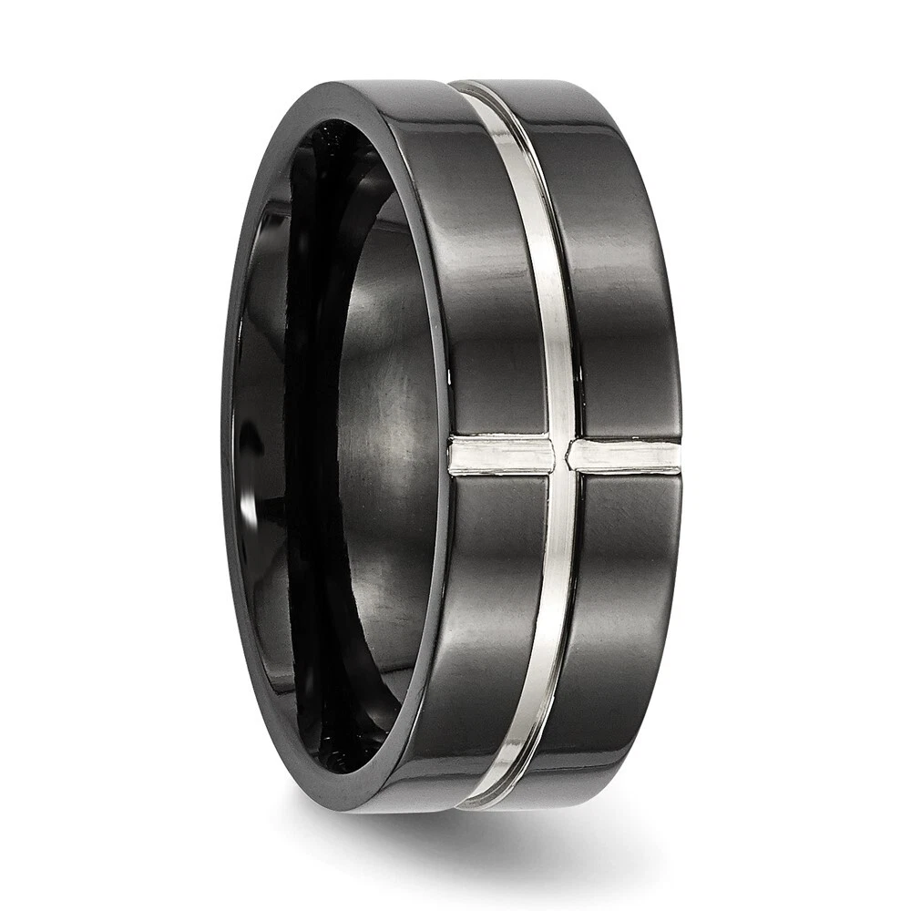 Finish:Polished|Plating:IP-Plated|Band Width:8 mm|Material: Primary:Titanium|Ring Fit:Comfort|Sizeable:No|Item Weight U/M:gm|Width of Item:8 mm|Packaging:Gift Pouch|Product Type:Jewelry|Jewelry Type:Rings|Sold By Unit:Each|Gender:Unisex|Texture:Grooved|Material: Primary - Color:Grey|Ring Type:Wedding Bands|Edge Type:Flat|Plating Color:Black|Ring Shape:Flat All weights and measurements are approximate and may vary slightly from the listed information. Welcome to diamond_6720 Payments We accept all Ebay approved payment. Please sent the payment to us within 8 days after the auction has ended, or you will have unpaid case auto open by eBay. Shipping Policy We will ship all items within 1 business days of purchase during the work week (M-F) excluding holidays. If you order on Friday, your order will be shipped the following business day. Tracking will be provided when it becomes available. We will only ship to a PayPal Verified Address. Please make sure your address is current and correct. If the information does not match, your order may be canceled. Buyers are responsible for all customs, duties and taxes for your respective countries. Delivery times for International Shipping will vary. California Buyers Pay 9.0% Tax on all orders. case auto open by eBay. Return Policy & Exchange Returns or Exchange are accepted. Buyer must contact us within 30 days after the item is received. Item must be returned in unworn and resalable condition. We will only issue a refund for the purchase price, excluding any shipping fees. If we are at fault, we will provide a full refund. Buyer is responsible for all return shipping costs. BUYERS FEEDBACK If you have any concerns regarding your purchase, please contact us via eBay Message, we assure you that a satisfactory resolution will be reached. Your feedback is very important to us Do remember to give us 5 star rating(*****) if you are satisfied with our product & service .