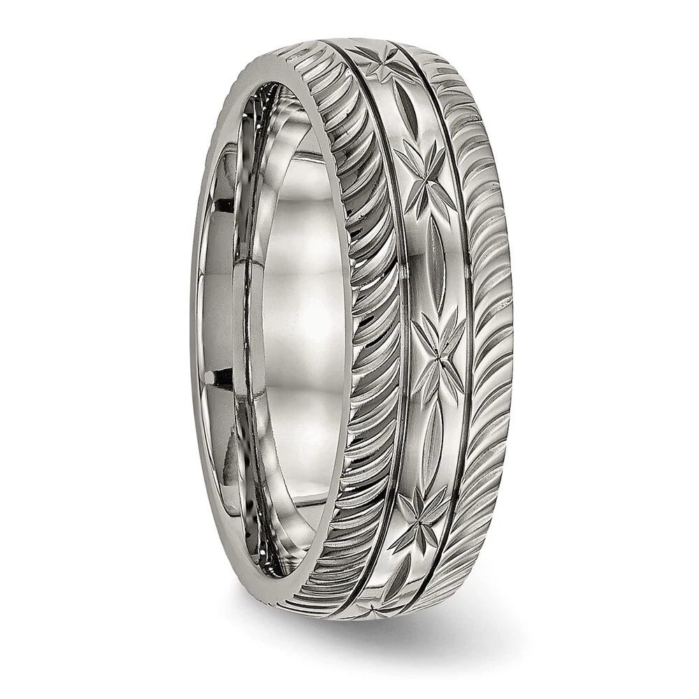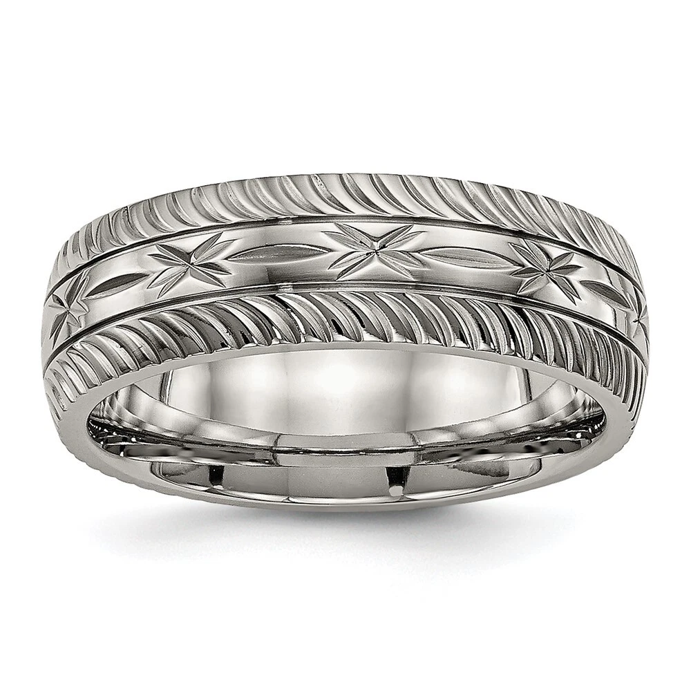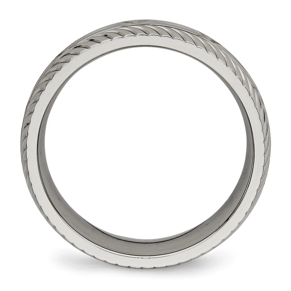 Titanium Polished Diamond Cut 7mm Band Ring Size 12 for Men 3.68gm