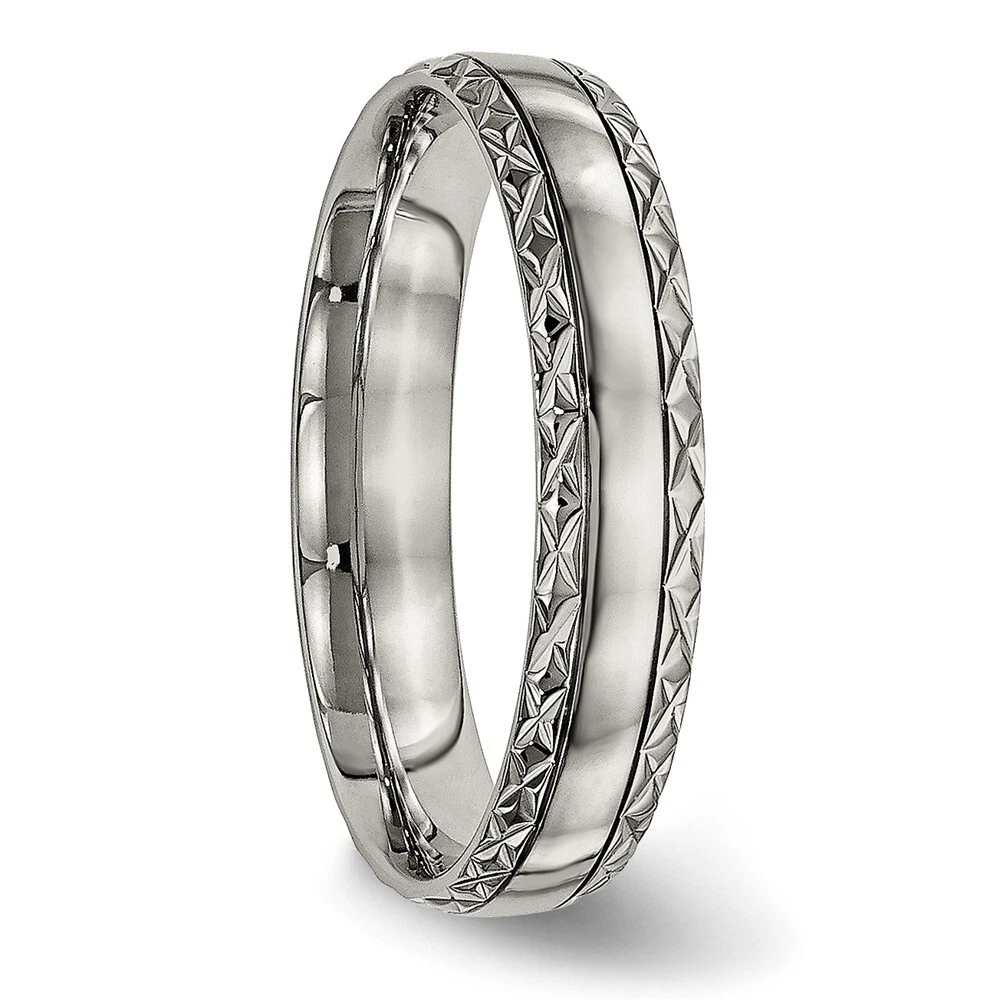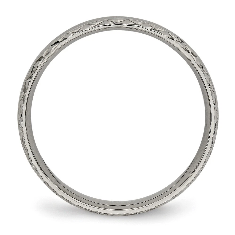 Finish:Polished|Band Width:5 mm|Material: Primary:Titanium|Ring Fit:Standard|Sizeable:No|Thickness:< 1.5 mm|Item Weight U/M:gm|Width of Item:5 mm|Engravable:Yes|Packaging:Gift Pouch|Product Type:Jewelry|Jewelry Type:Rings|Sold By Unit:Each|Gender:Unisex|Texture:Crisscross|Material: Primary - Color:Grey|Ring Type:Wedding Bands|Edge Type:Flat|Ring Shape:Half Round All weights and measurements are approximate and may vary slightly from the listed information. Welcome to diamond_6720 Payments We accept all Ebay approved payment. Please sent the payment to us within 8 days after the auction has ended, or you will have unpaid case auto open by eBay. Shipping Policy We will ship all items within 1 business days of purchase during the work week (M-F) excluding holidays. If you order on Friday, your order will be shipped the following business day. Tracking will be provided when it becomes available. We will only ship to a PayPal Verified Address. Please make sure your address is current and correct. If the information does not match, your order may be canceled. Buyers are responsible for all customs, duties and taxes for your respective countries. Delivery times for International Shipping will vary. California Buyers Pay 9.0% Tax on all orders. case auto open by eBay. Return Policy & Exchange Returns or Exchange are accepted. Buyer must contact us within 30 days after the item is received. Item must be returned in unworn and resalable condition. We will only issue a refund for the purchase price, excluding any shipping fees. If we are at fault, we will provide a full refund. Buyer is responsible for all return shipping costs. BUYERS FEEDBACK If you have any concerns regarding your purchase, please contact us via eBay Message, we assure you that a satisfactory resolution will be reached. Your feedback is very important to us Do remember to give us 5 star rating(*****) if you are satisfied with our product & service .