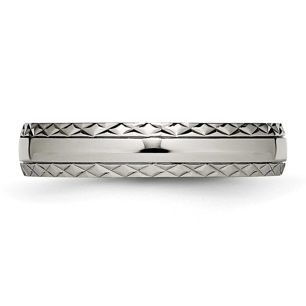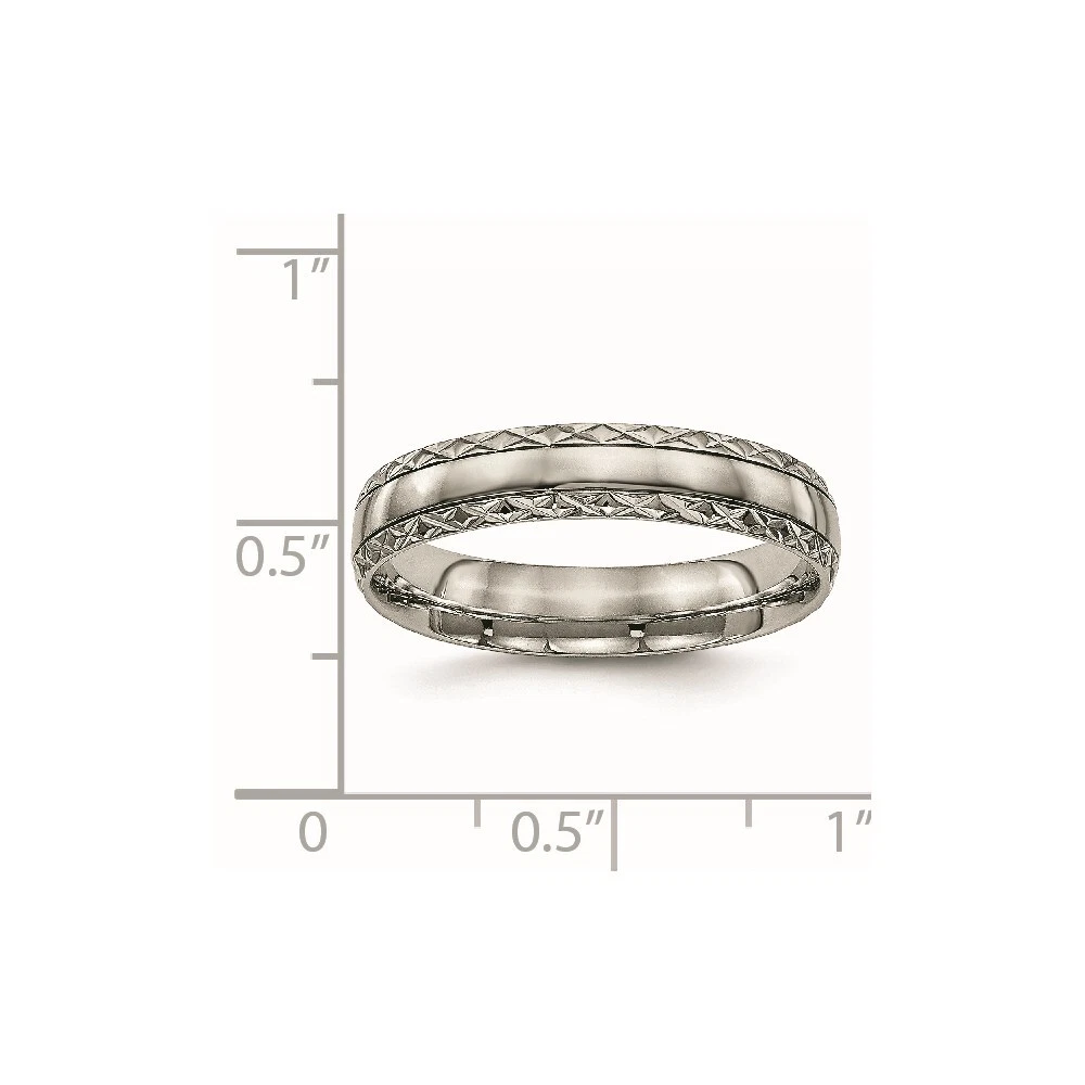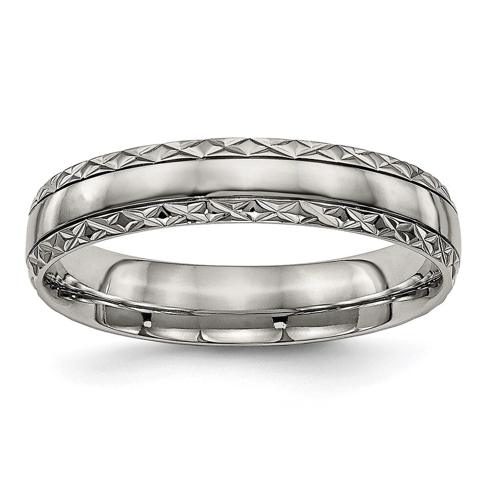 Finish:Polished|Band Width:5 mm|Material: Primary:Titanium|Ring Fit:Standard|Sizeable:No|Thickness:< 1.5 mm|Item Weight U/M:gm|Width of Item:5 mm|Engravable:Yes|Packaging:Gift Pouch|Product Type:Jewelry|Jewelry Type:Rings|Sold By Unit:Each|Gender:Unisex|Texture:Crisscross|Material: Primary - Color:Grey|Ring Type:Wedding Bands|Edge Type:Flat|Ring Shape:Half Round All weights and measurements are approximate and may vary slightly from the listed information. Welcome to diamond_6720 Payments We accept all Ebay approved payment. Please sent the payment to us within 8 days after the auction has ended, or you will have unpaid case auto open by eBay. Shipping Policy We will ship all items within 1 business days of purchase during the work week (M-F) excluding holidays. If you order on Friday, your order will be shipped the following business day. Tracking will be provided when it becomes available. We will only ship to a PayPal Verified Address. Please make sure your address is current and correct. If the information does not match, your order may be canceled. Buyers are responsible for all customs, duties and taxes for your respective countries. Delivery times for International Shipping will vary. California Buyers Pay 9.0% Tax on all orders. case auto open by eBay. Return Policy & Exchange Returns or Exchange are accepted. Buyer must contact us within 30 days after the item is received. Item must be returned in unworn and resalable condition. We will only issue a refund for the purchase price, excluding any shipping fees. If we are at fault, we will provide a full refund. Buyer is responsible for all return shipping costs. BUYERS FEEDBACK If you have any concerns regarding your purchase, please contact us via eBay Message, we assure you that a satisfactory resolution will be reached. Your feedback is very important to us Do remember to give us 5 star rating(*****) if you are satisfied with our product & service .