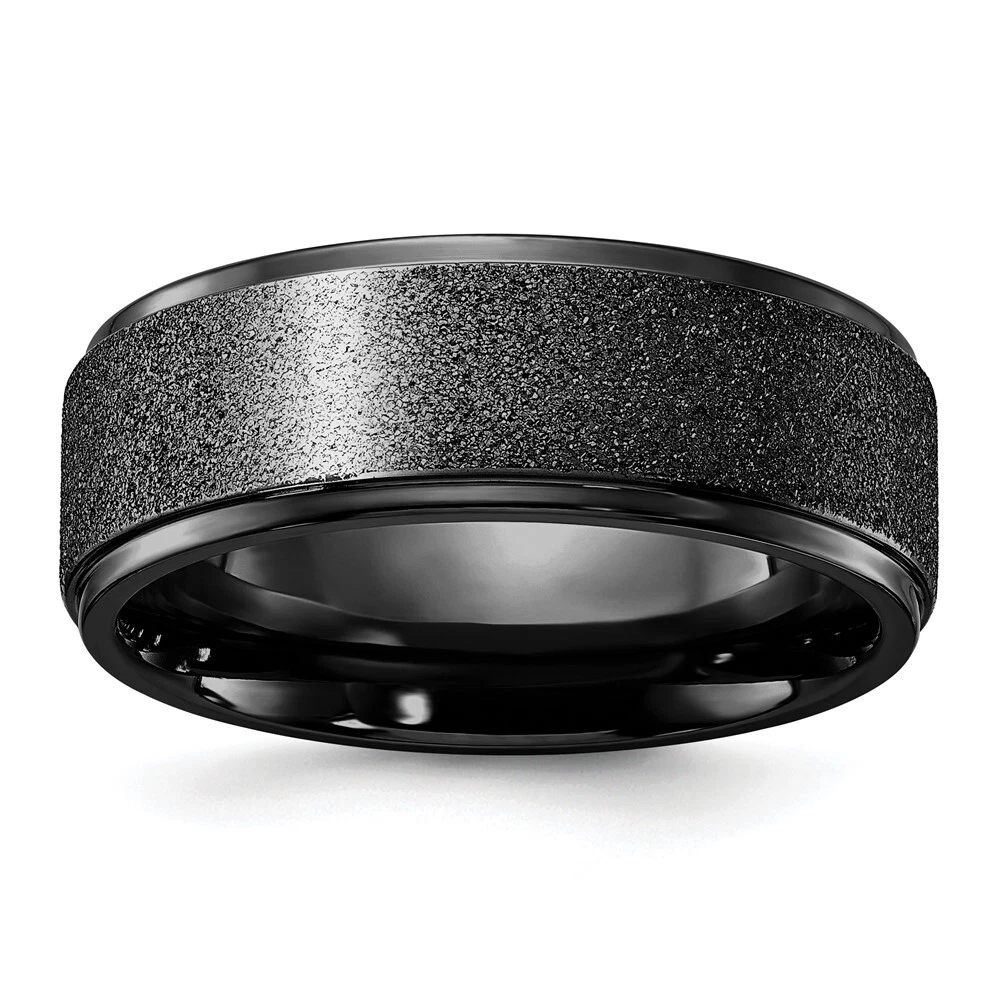 Titanium Polished Laser-cut Center Black IP-plated 8mm Band Ring Size 8