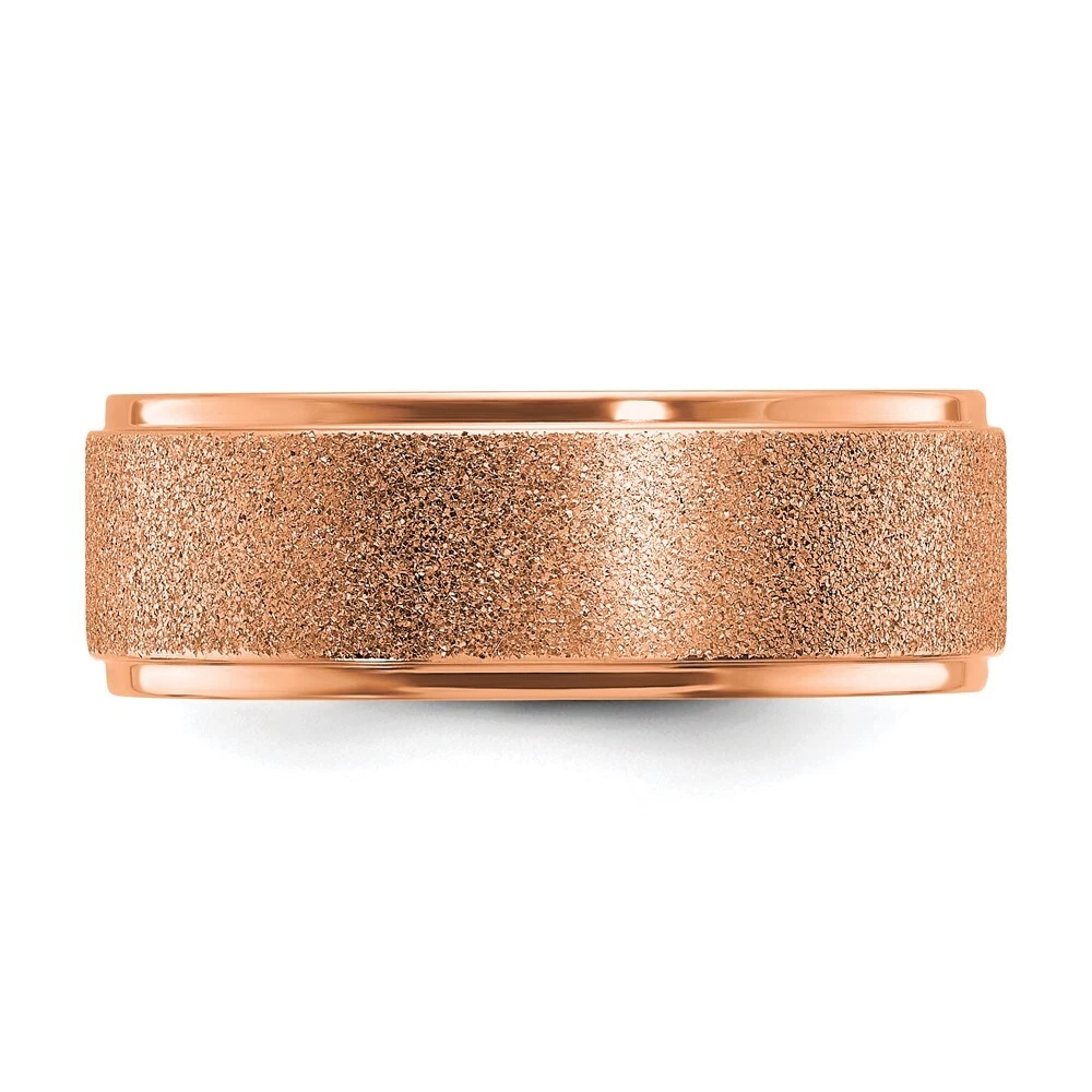 Titanium Polished Laser-cut Center Rose IP-plated 8mm Band Ring Size 10