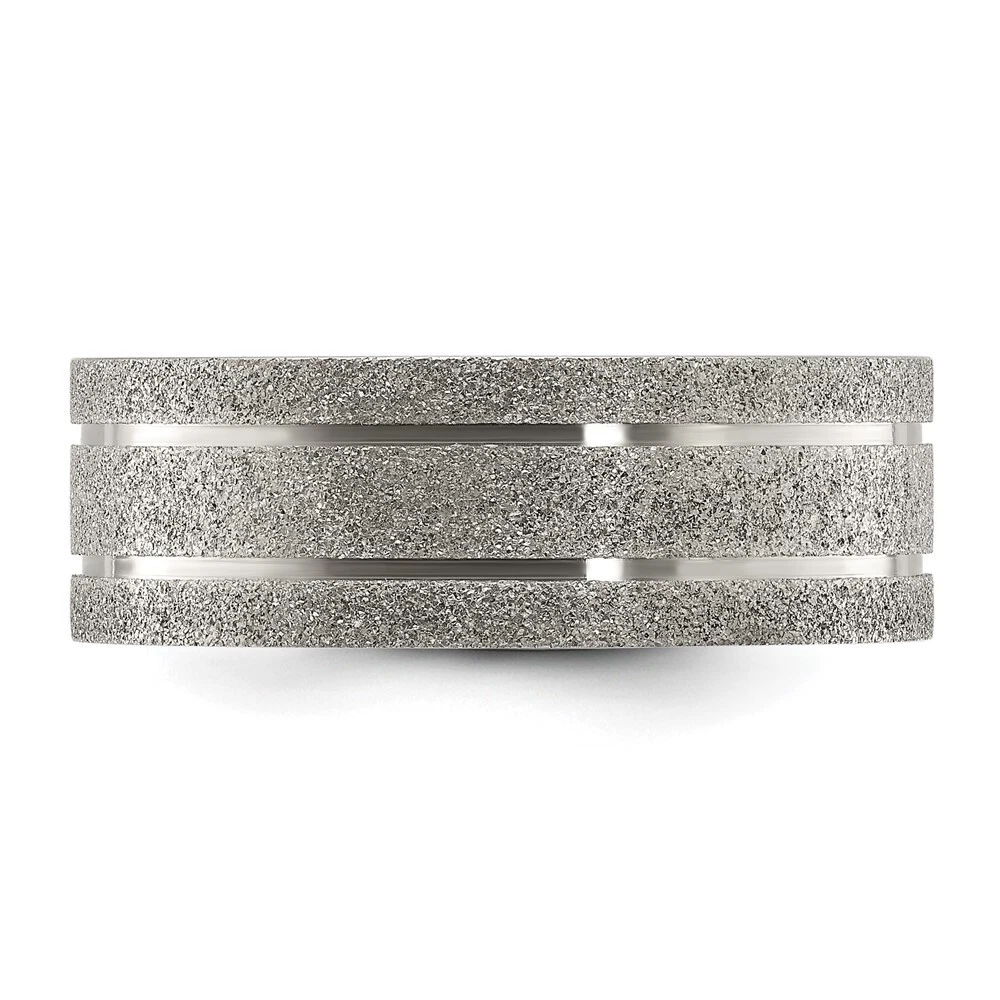 Titanium Polished Laser-cut Grooved 8mm Band Ring Size 10 for Men 4.97gm