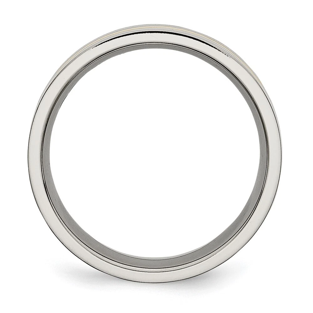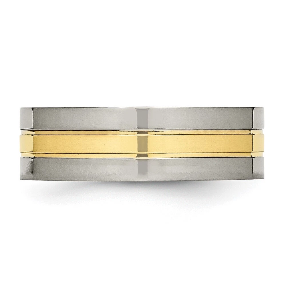 Titanium Polished Yellow IP-plated 7mm Grooved Band Ring Size 8
