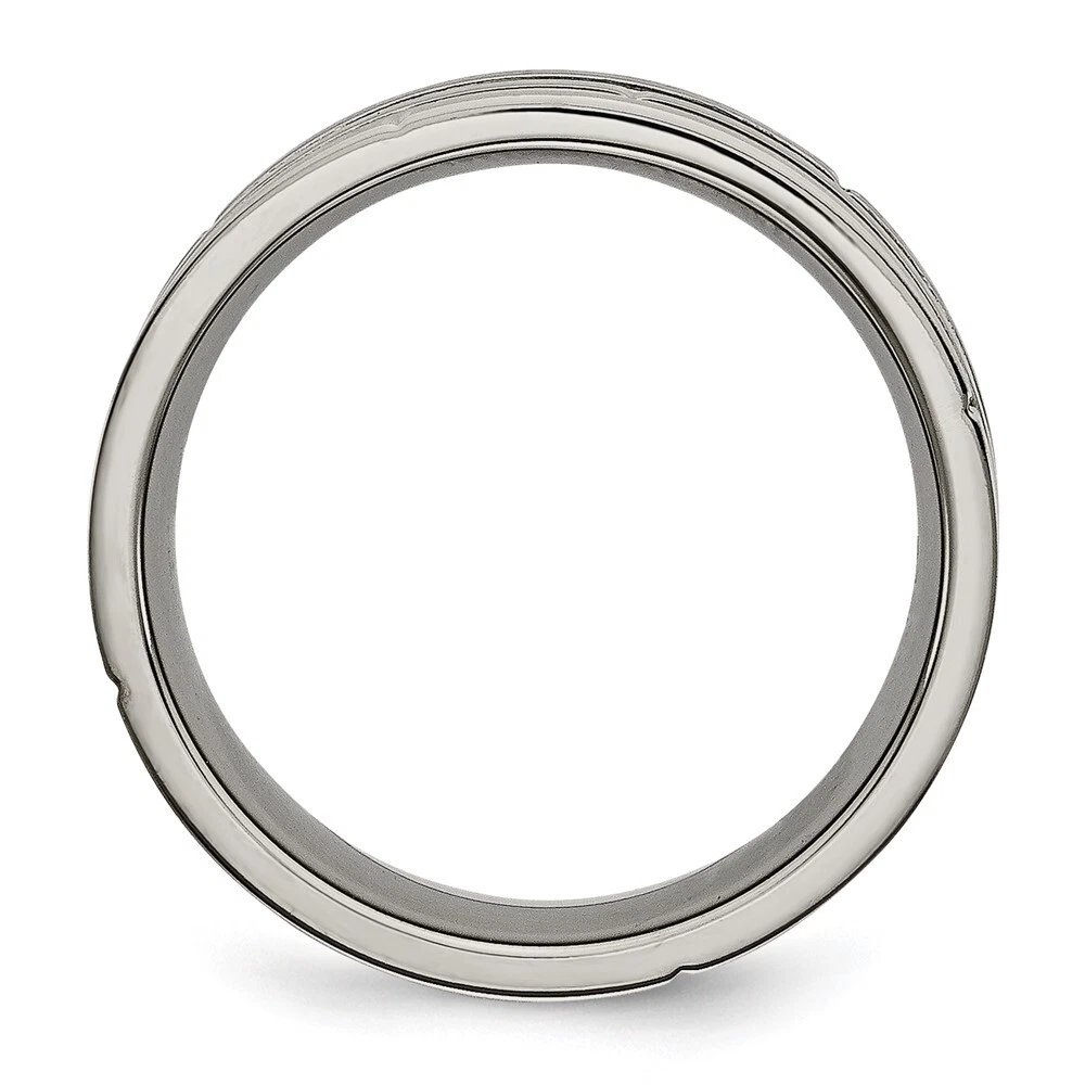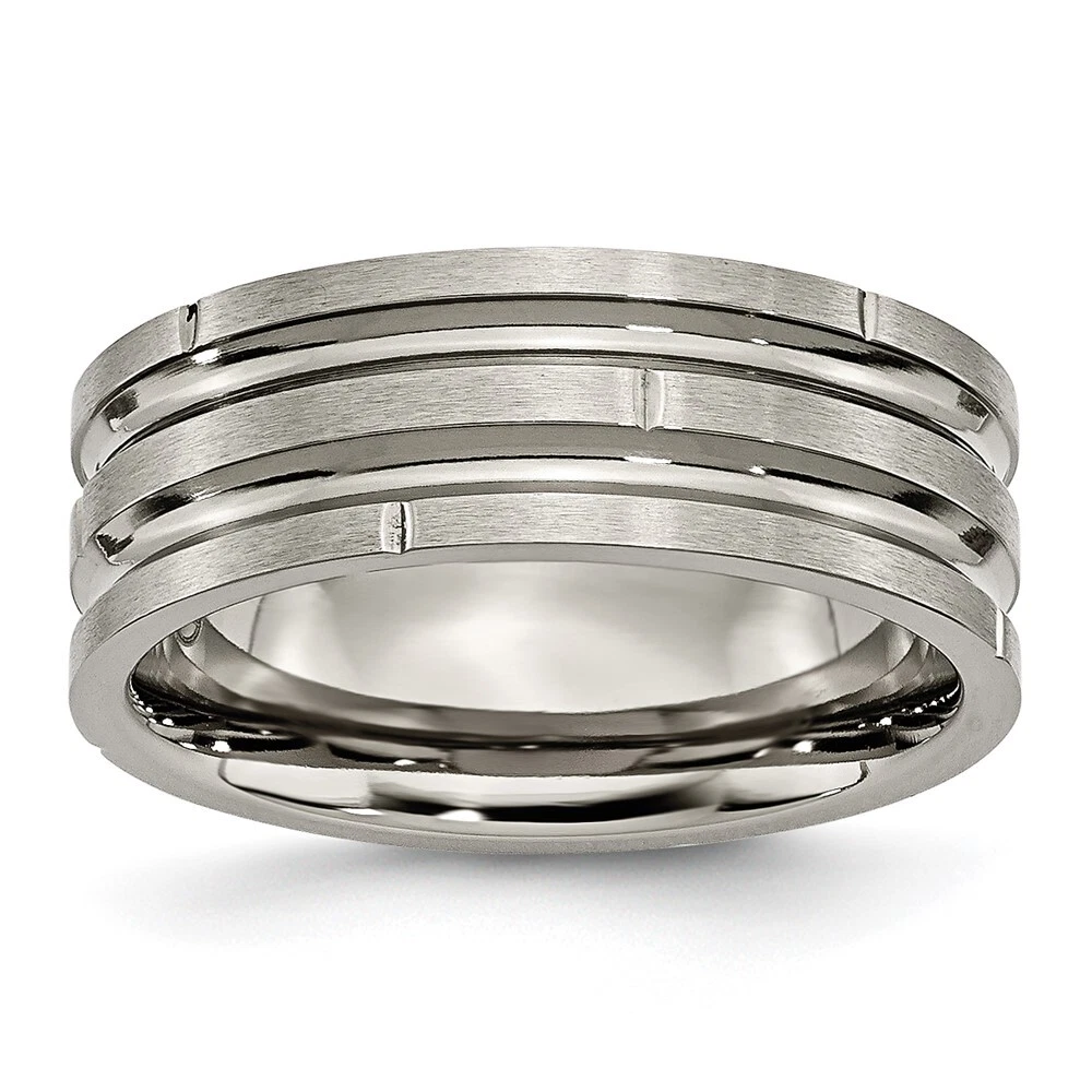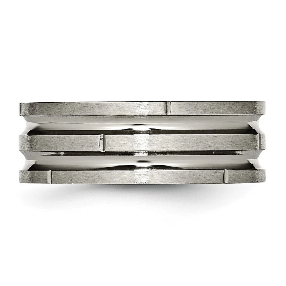 Titanium Polished and Satin 8mm Grooved and Notched Band Ring Size 11
