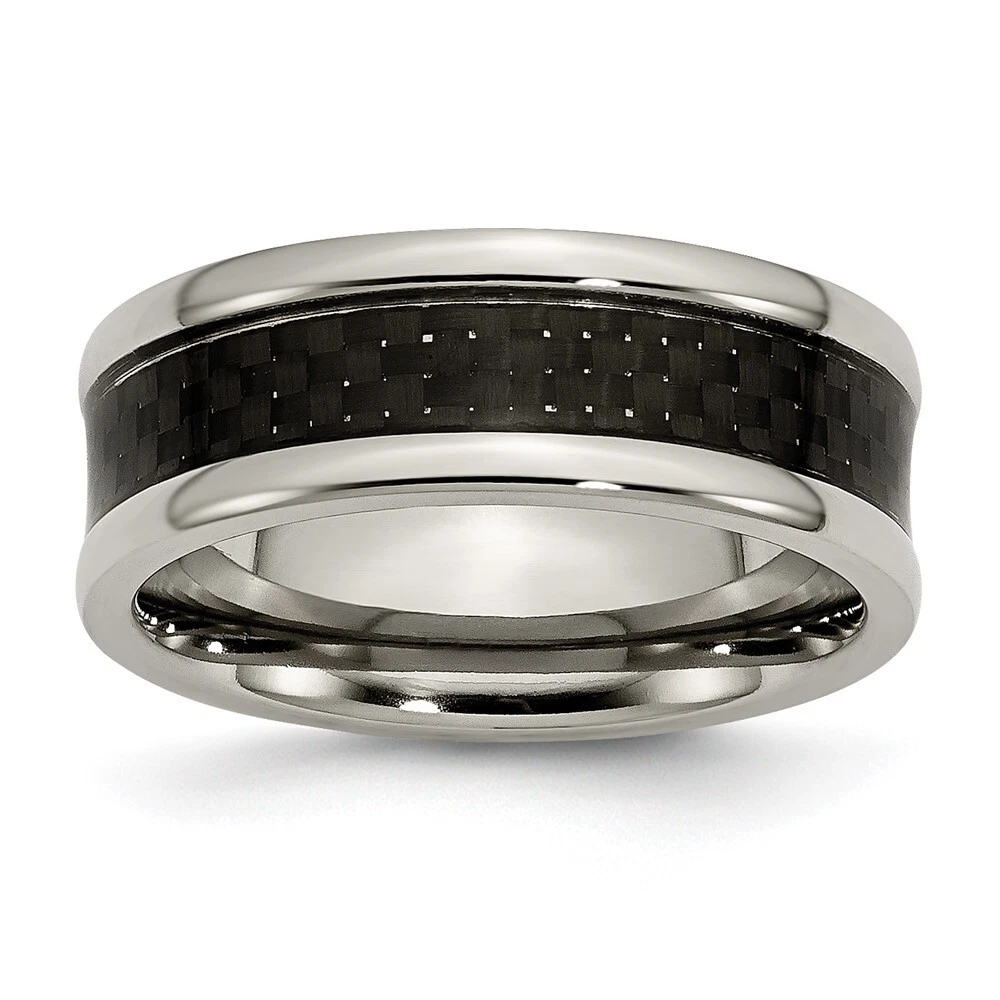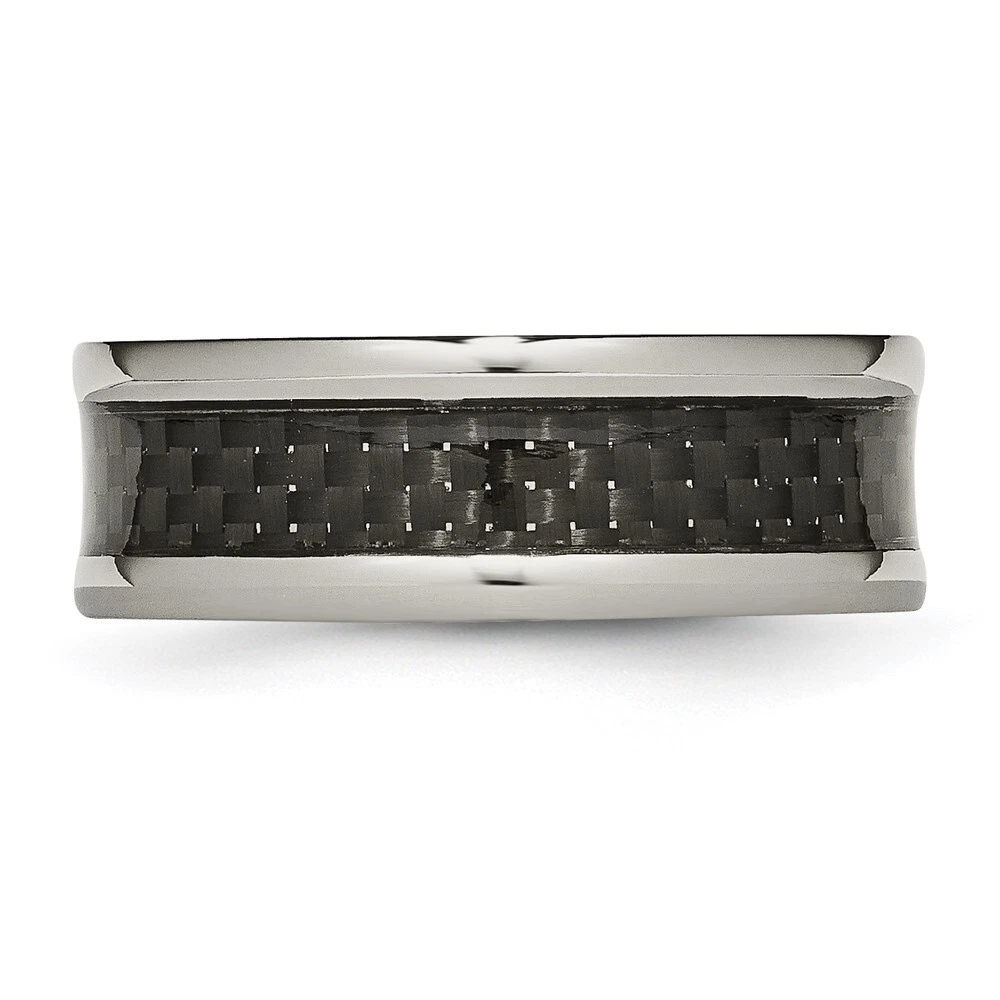 Titanium Polished with Black Carbon Fiber Inlay 8mm Band Ring Size 9