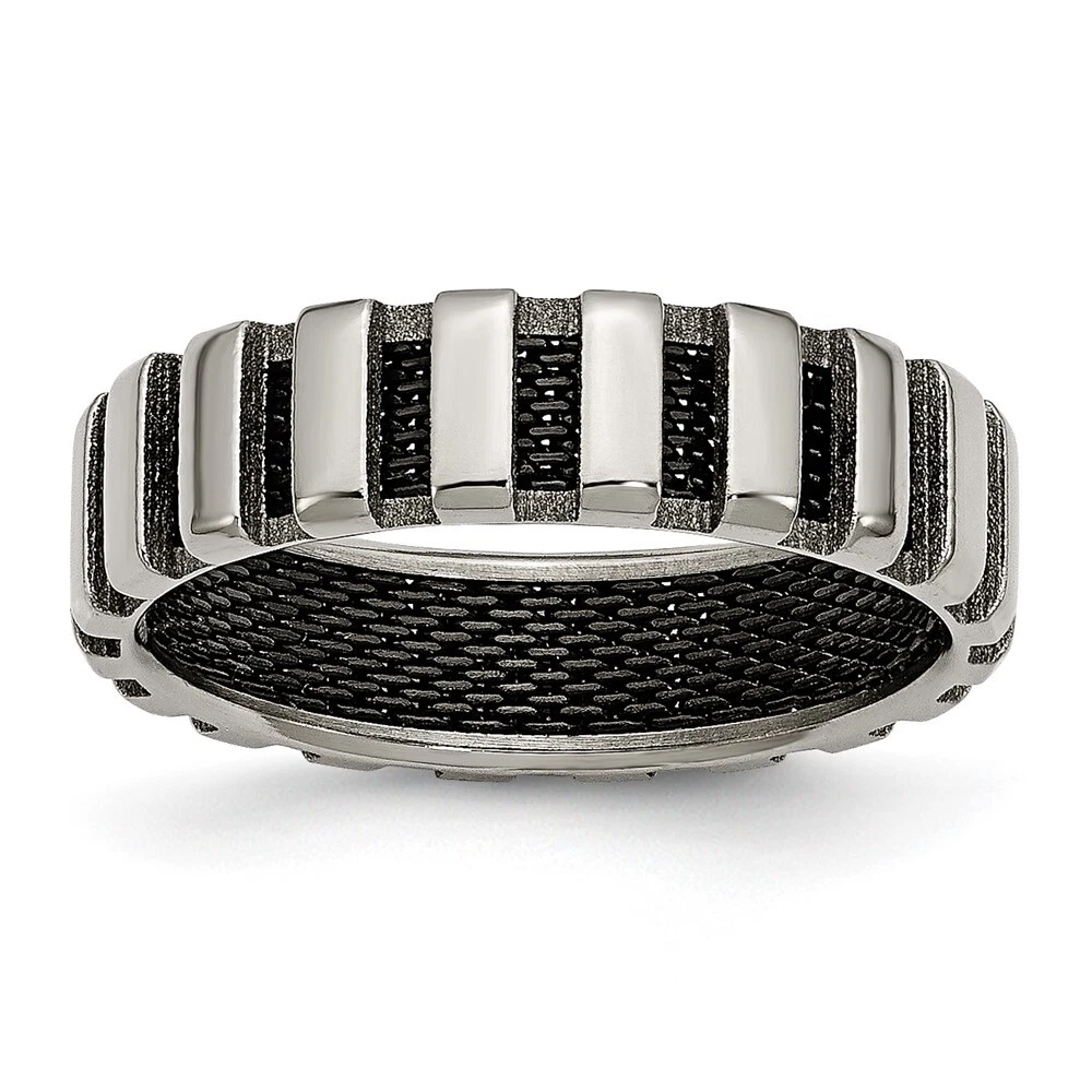 Titanium Polished with Black IP-plated Wire 6mm Band Ring Size 9