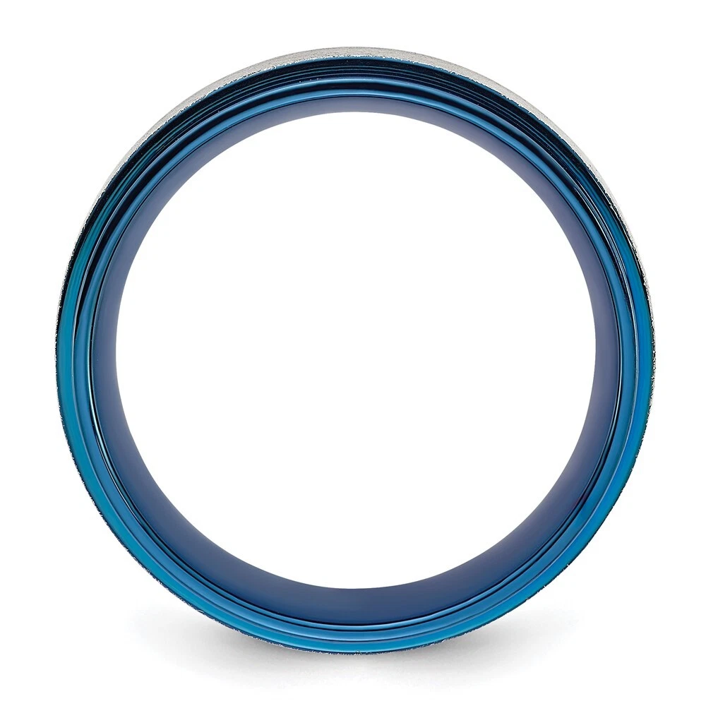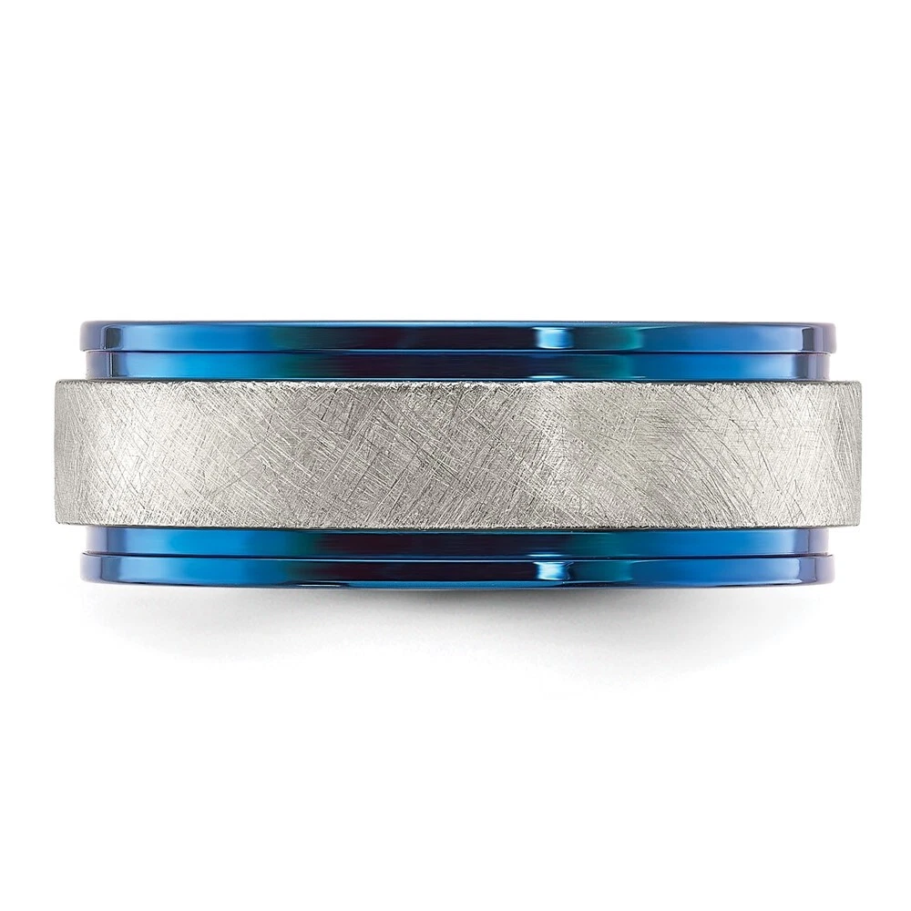 Titanium Polished with Brushed Center Blue IP-plated 8mm Band Ring Size 9