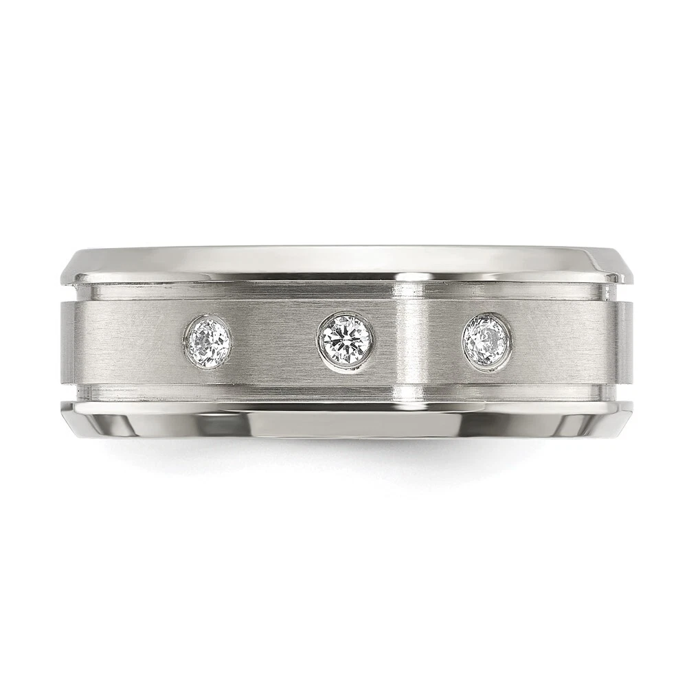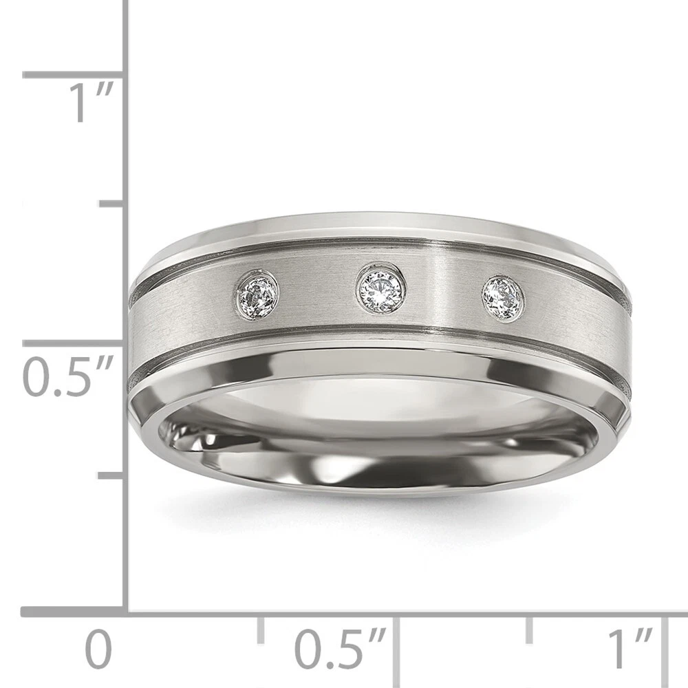 Titanium Polished with Cubic Zirconia 8mm Band Ring Size 12 for Men 4.5gm