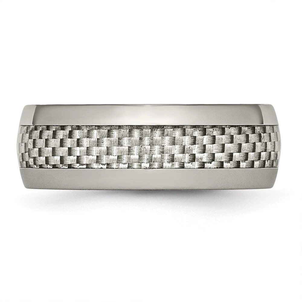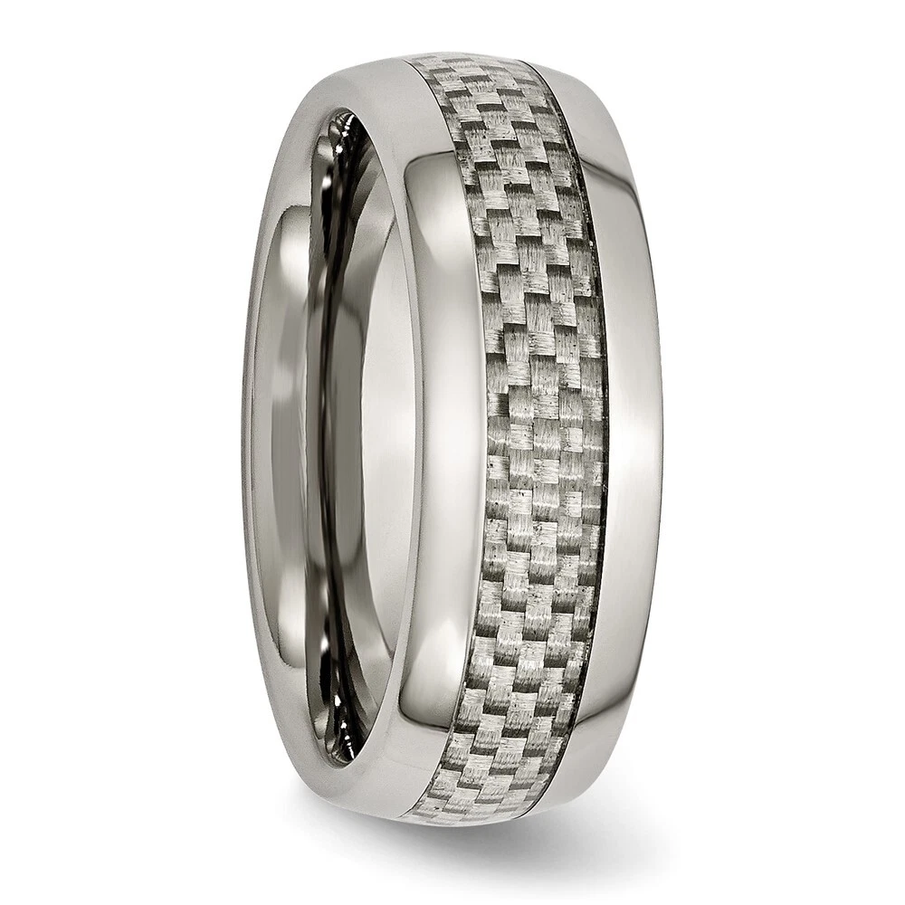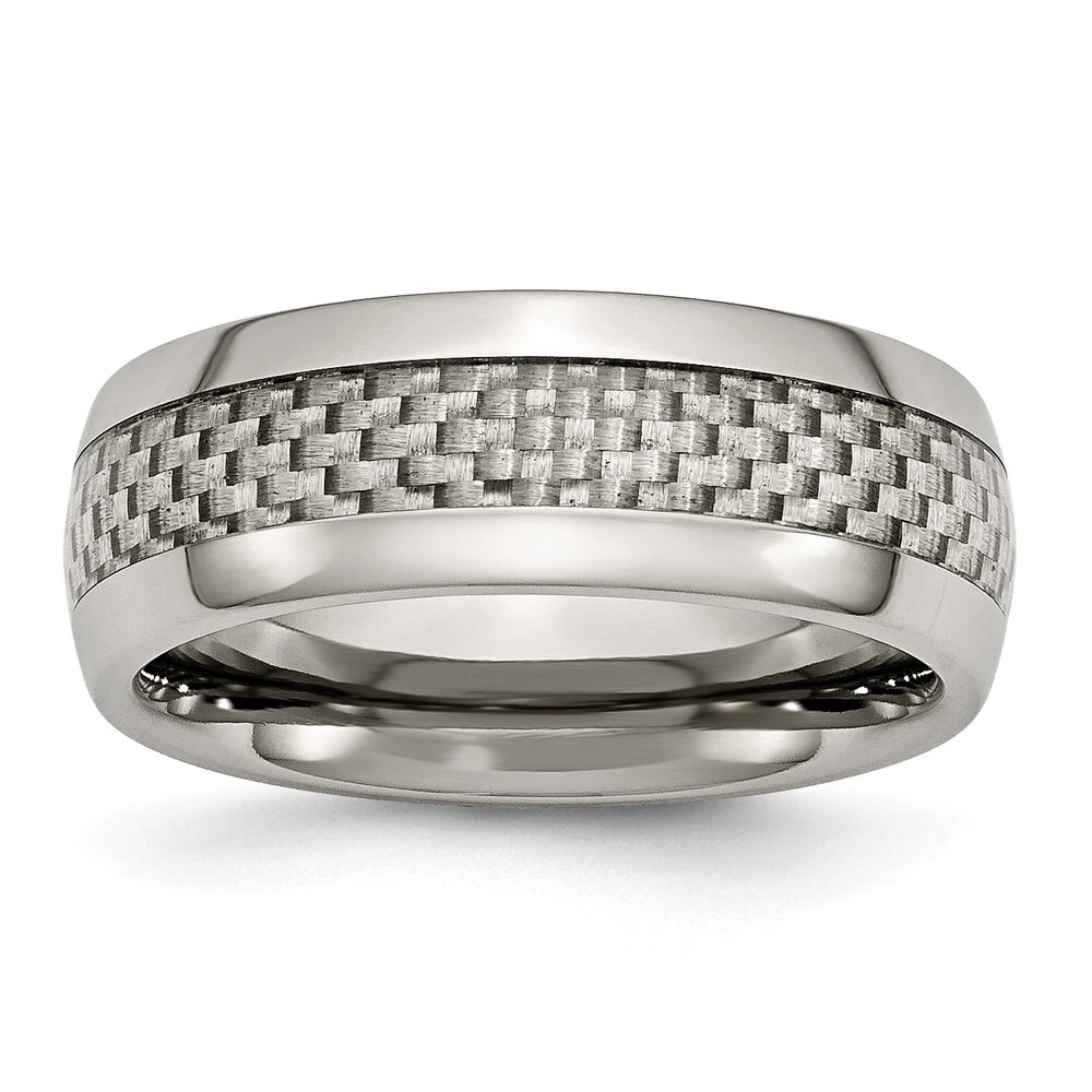 Finish:Polished|Material: Accent Color 1:Grey|Band Width:8 mm|Material: Primary:Titanium|Ring Fit:Standard|Sizeable:No|Thickness:< 2 mm|Item Weight U/M:gm|Width of Item:8 mm|Engravable:Yes|Packaging:Gift Pouch|Product Type:Jewelry|Jewelry Type:Rings|Sold By Unit:Each|Gender:Unisex|Material: Inlay:Carbon Fiber|Material: Primary - Color:Grey|Ring Type:Wedding Bands|Edge Type:Rounded|Ring Shape:Half Round All weights and measurements are approximate and may vary slightly from the listed information. Welcome to diamond_6720 Payments We accept all Ebay approved payment. Please sent the payment to us within 8 days after the auction has ended, or you will have unpaid case auto open by eBay. Shipping Policy We will ship all items within 1 business days of purchase during the work week (M-F) excluding holidays. If you order on Friday, your order will be shipped the following business day. Tracking will be provided when it becomes available. We will only ship to a PayPal Verified Address. Please make sure your address is current and correct. If the information does not match, your order may be canceled. Buyers are responsible for all customs, duties and taxes for your respective countries. Delivery times for International Shipping will vary. California Buyers Pay 9.0% Tax on all orders. case auto open by eBay. Return Policy & Exchange Returns or Exchange are accepted. Buyer must contact us within 30 days after the item is received. Item must be returned in unworn and resalable condition. We will only issue a refund for the purchase price, excluding any shipping fees. If we are at fault, we will provide a full refund. Buyer is responsible for all return shipping costs. BUYERS FEEDBACK If you have any concerns regarding your purchase, please contact us via eBay Message, we assure you that a satisfactory resolution will be reached. Your feedback is very important to us Do remember to give us 5 star rating(*****) if you are satisfied with our product & service .