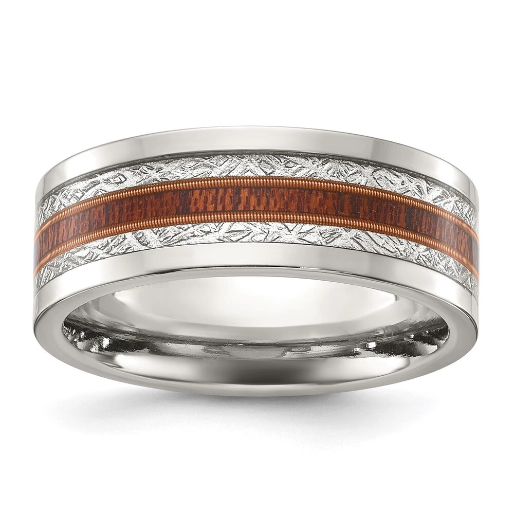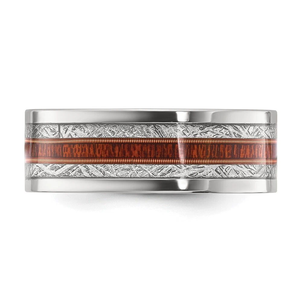 Titanium Polished with Wood and Imitation Meteorite Inlay 8mm Band Ring Size 9