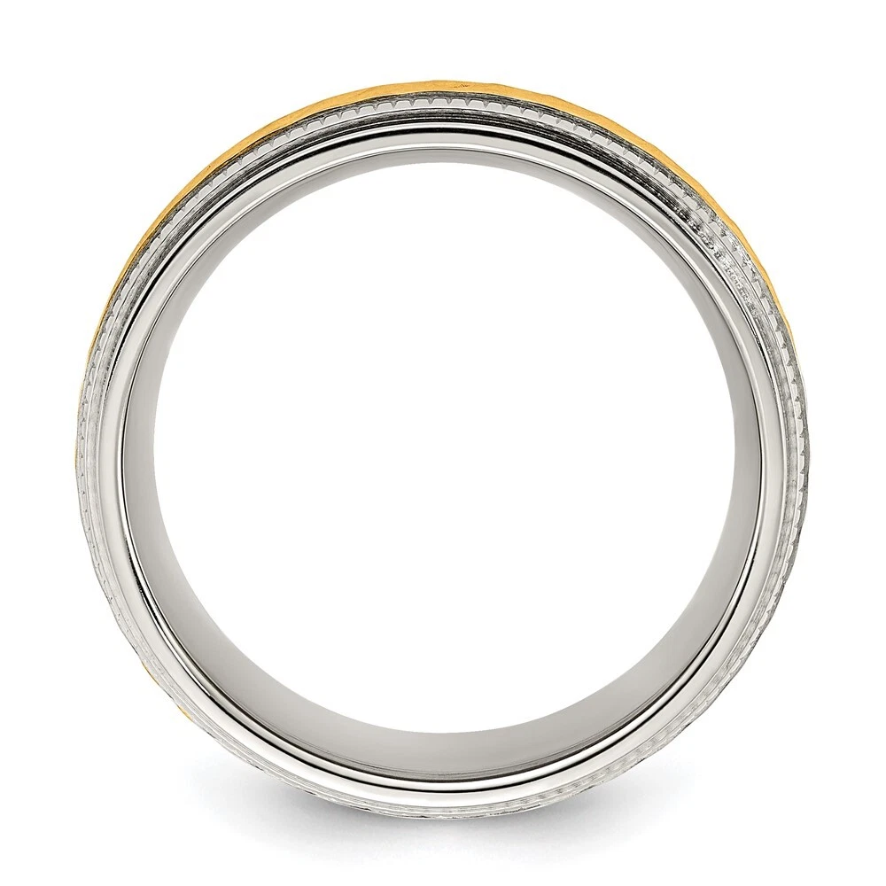 Titanium Polished with Yellow IP-plated Center 8mm Band Ring Size 8