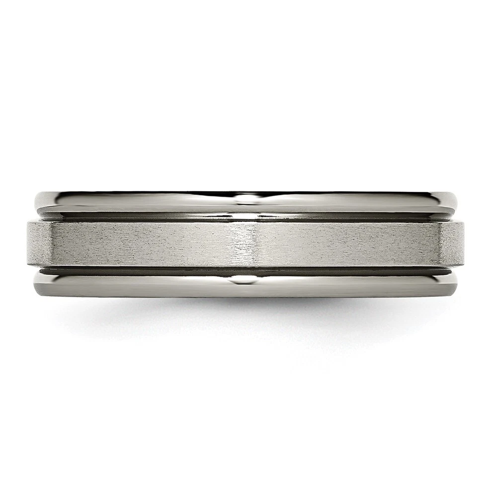 Finish:Polished & Brushed|Band Width:6 mm|Feature:Nickel Free|Material: Primary:Titanium|Ring Fit:Comfort|Sizeable:No|Thickness:< 2.5 mm|Item Weight U/M:gm|Width of Item:6 mm|Engravable:Yes|Packaging:Gift Pouch|Product Type:Jewelry|Jewelry Type:Rings|Sold By Unit:Each|Gender:Unisex|Texture:Grooved|Material: Primary - Color:Grey|Ring Type:Wedding Bands|Edge Type:Grooved All weights and measurements are approximate and may vary slightly from the listed information. Welcome to diamond_6720 Payments We accept all Ebay approved payment. Please sent the payment to us within 8 days after the auction has ended, or you will have unpaid case auto open by eBay. Shipping Policy We will ship all items within 1 business days of purchase during the work week (M-F) excluding holidays. If you order on Friday, your order will be shipped the following business day. Tracking will be provided when it becomes available. We will only ship to a PayPal Verified Address. Please make sure your address is current and correct. If the information does not match, your order may be canceled. Buyers are responsible for all customs, duties and taxes for your respective countries. Delivery times for International Shipping will vary. California Buyers Pay 9.0% Tax on all orders. case auto open by eBay. Return Policy & Exchange Returns or Exchange are accepted. Buyer must contact us within 30 days after the item is received. Item must be returned in unworn and resalable condition. We will only issue a refund for the purchase price, excluding any shipping fees. If we are at fault, we will provide a full refund. Buyer is responsible for all return shipping costs. BUYERS FEEDBACK If you have any concerns regarding your purchase, please contact us via eBay Message, we assure you that a satisfactory resolution will be reached. Your feedback is very important to us Do remember to give us 5 star rating(*****) if you are satisfied with our product & service .
