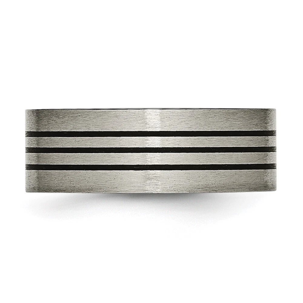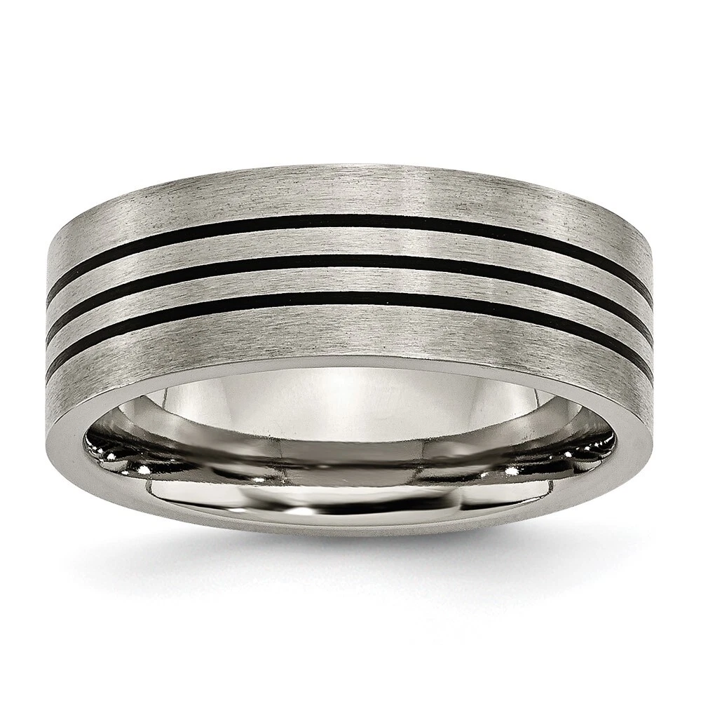 Finish:Polished & Brushed|Material: Accents:Enamel|Material: Accent Color 1:Black|Band Width:8 mm|Material: Primary:Titanium|Ring Fit:Standard|Sizeable:No|Thickness:< 2 mm|Item Weight U/M:gm|Width of Item:8 mm|Engravable:Yes|Packaging:Gift Pouch|Product Type:Jewelry|Jewelry Type:Rings|Sold By Unit:Each|Gender:Unisex|Texture:Satin|Material: Primary - Color:Grey|Ring Type:Wedding Bands|Edge Type:Flat|Ring Shape:Flat All weights and measurements are approximate and may vary slightly from the listed information. Welcome to diamond_6720 Payments We accept all Ebay approved payment. Please sent the payment to us within 8 days after the auction has ended, or you will have unpaid case auto open by eBay. Shipping Policy We will ship all items within 1 business days of purchase during the work week (M-F) excluding holidays. If you order on Friday, your order will be shipped the following business day. Tracking will be provided when it becomes available. We will only ship to a PayPal Verified Address. Please make sure your address is current and correct. If the information does not match, your order may be canceled. Buyers are responsible for all customs, duties and taxes for your respective countries. Delivery times for International Shipping will vary. California Buyers Pay 9.0% Tax on all orders. case auto open by eBay. Return Policy & Exchange Returns or Exchange are accepted. Buyer must contact us within 30 days after the item is received. Item must be returned in unworn and resalable condition. We will only issue a refund for the purchase price, excluding any shipping fees. If we are at fault, we will provide a full refund. Buyer is responsible for all return shipping costs. BUYERS FEEDBACK If you have any concerns regarding your purchase, please contact us via eBay Message, we assure you that a satisfactory resolution will be reached. Your feedback is very important to us Do remember to give us 5 star rating(*****) if you are satisfied with our product & service .