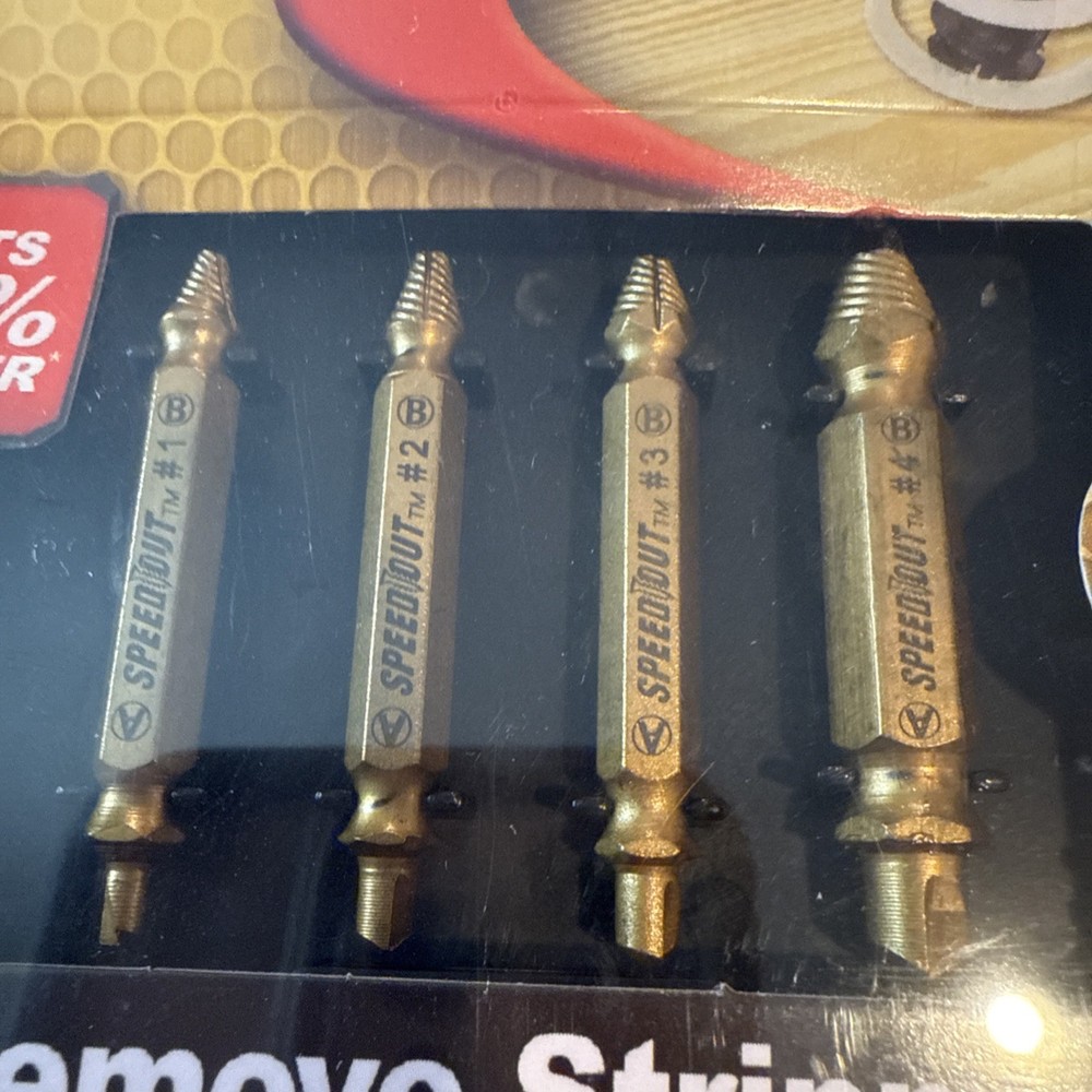 The Ontel SpeedOut Titanium Damaged Screw Extractor 4pc Set is a set of drill bits specifically designed to work with any drill. This set, featuring four different sizes, is perfect for removing damaged screws with ease. The Ontel brand is known for its quality and reliability, making this set a must-have for any DIY enthusiast or professional contractor. Upgrade your toolbox with this handy and efficient screw extractor set.