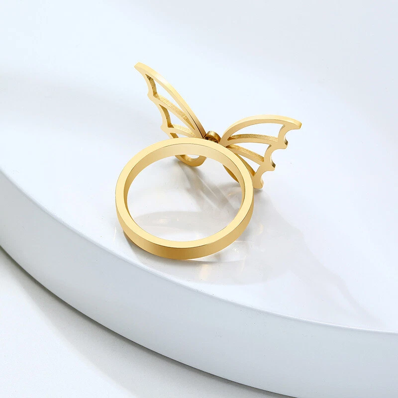 Titanium Steel Gold Butterfly Casting Ring for Women