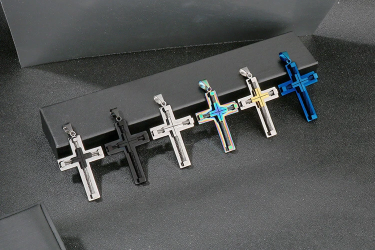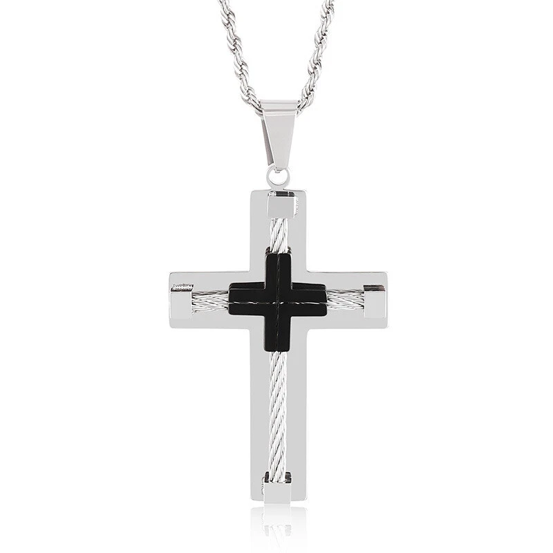 Titanium Steel Mens Cross Pendant Necklace Durable Stainless Steel Jewelry