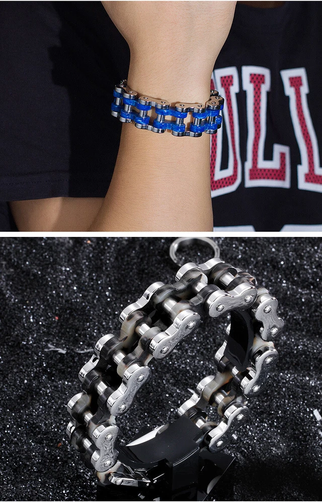 Titanium Steel Motorcycle Chain Bracelet for Men - Edgy Rocker Style Boyfriend Gift