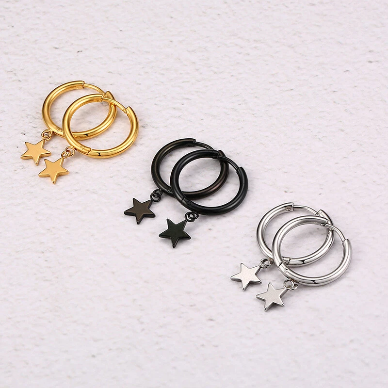 Titanium Steel Star Earrings Simple Fashion Men's And Women's Jewelry 3 Colors