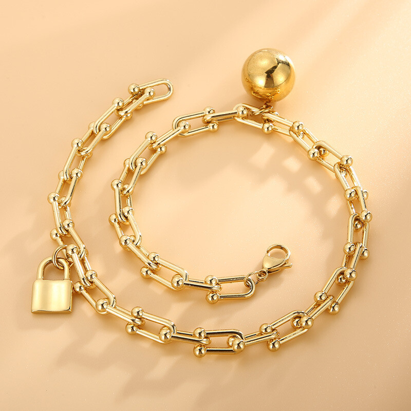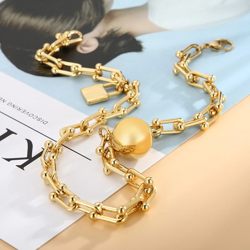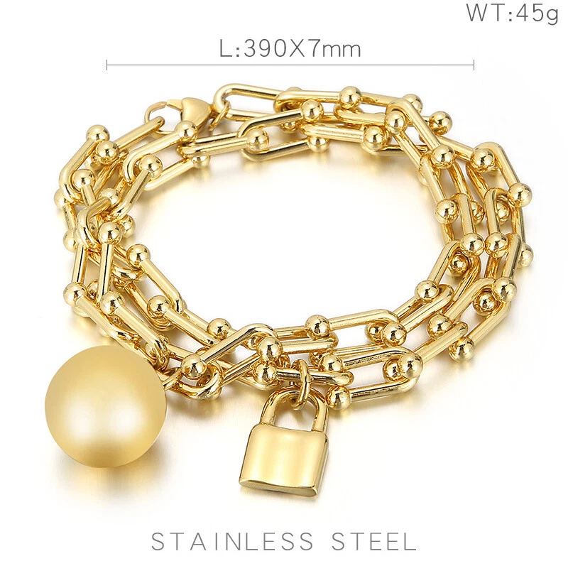 Titanium steel double layer round ball bracelet for women