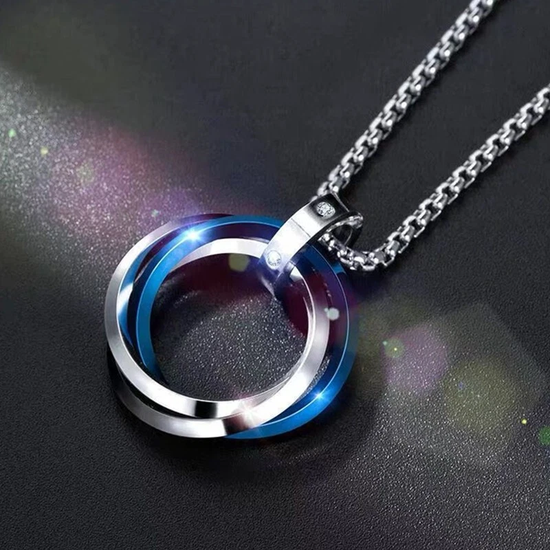 Titanium steel necklace, men's fashion clavicle chain, niche design Cuba pendant Material: titanium steel Treatment process: Polishing Shape: geometric type Chain style: bamboo chain Pendant material: titanium steel Length: 60cm Color: three-ring interlocking blue Style: Cool Style category: Personality