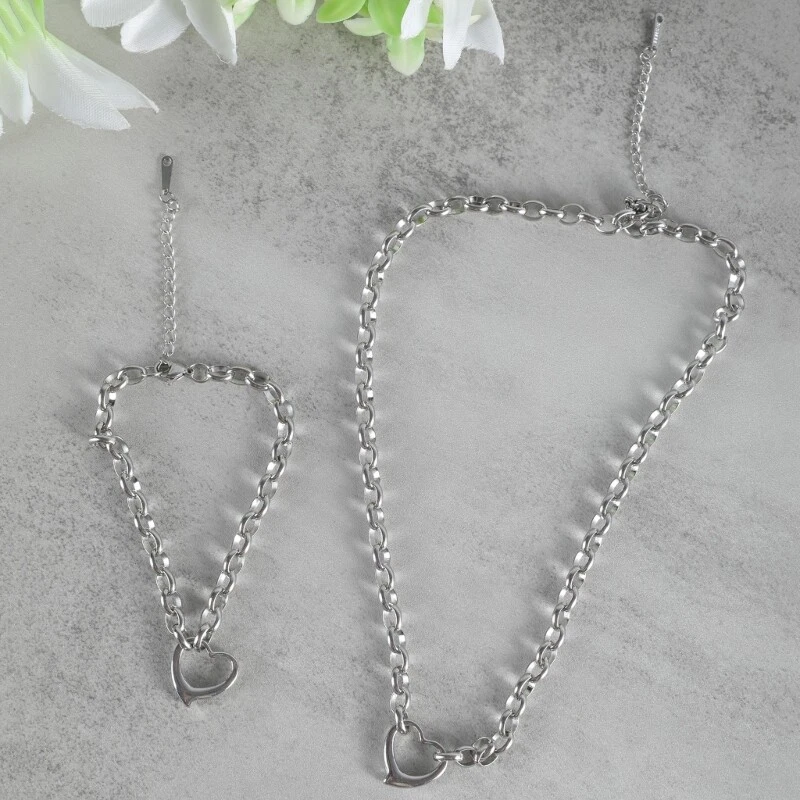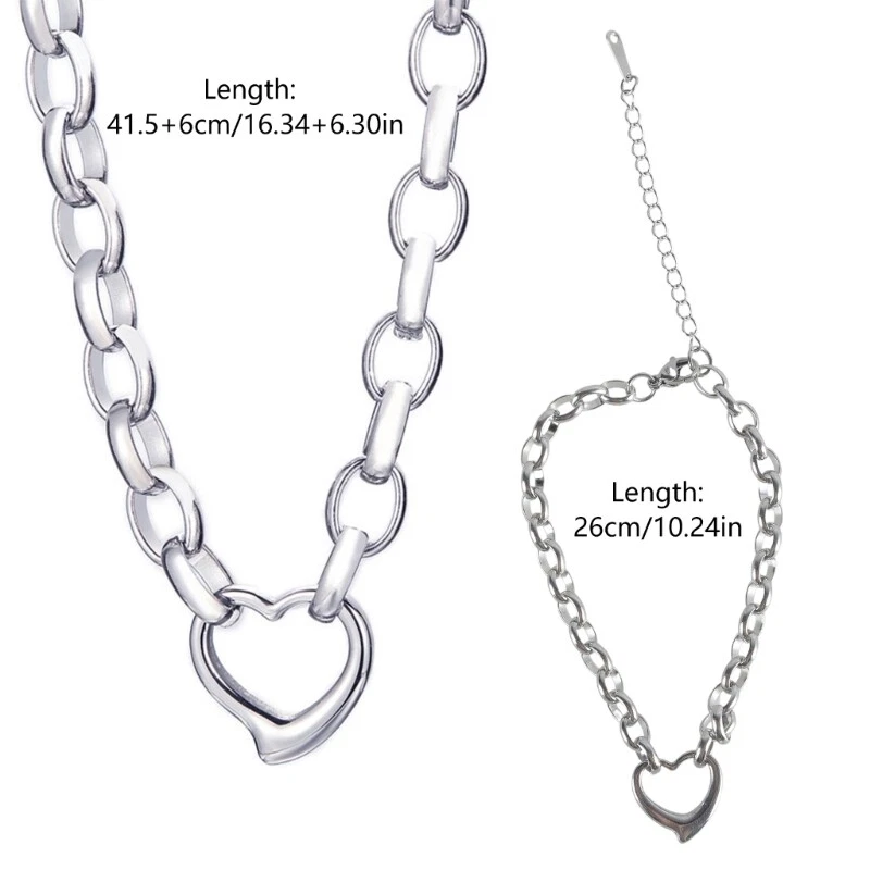 Features: Embraces elegances with this titaniums steel circle clasp heart pendant necklace and set, a testaments to durability and enduring Crafted from titaniums steel, the set resists wear and tarnishing, featuring a circle clasp and a heart pendant that adds a touch of elegances to your ensembles. Suit for fashion forward men and women who appreciate as well as couples seeking a symbol of their affection. for daily wear, date parties, or anniversaries, this jewelry set is adaptable to any occasion, enhancing your outfits with its subtle charm. this exquisite set to a special someone or treat yourself, ensuring a sophisticated accessory that complements both casual and formal looks. Specifications: Component:Titaniums Steel Size: Necklace:App. 45+6cm/17.72+2.36inch App.19cm 7.48inch Weight:58g Package Includes: 1 Set Titaniums Steel Jewelry note: 1.Please allow 1-2cm errors due to manual measurement, making sure that you will not mind before order. 2.Due to the differences between different monitors, the picture may not reflect the actual color.