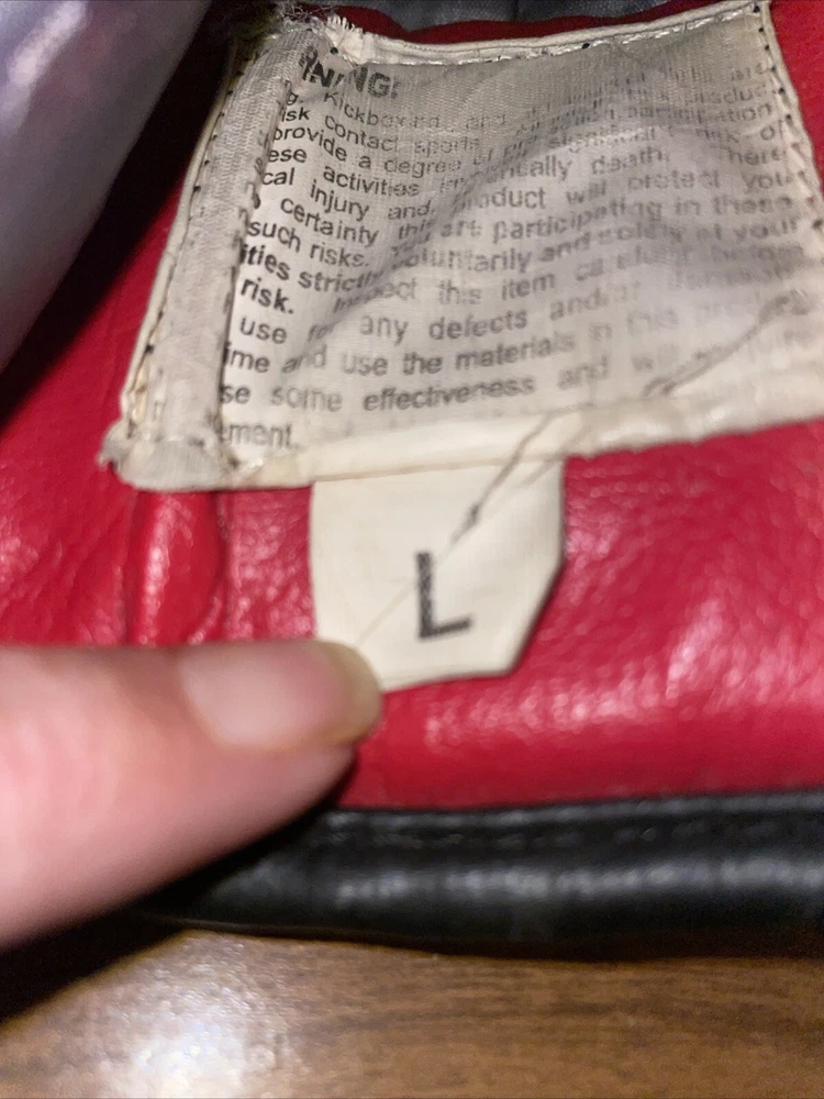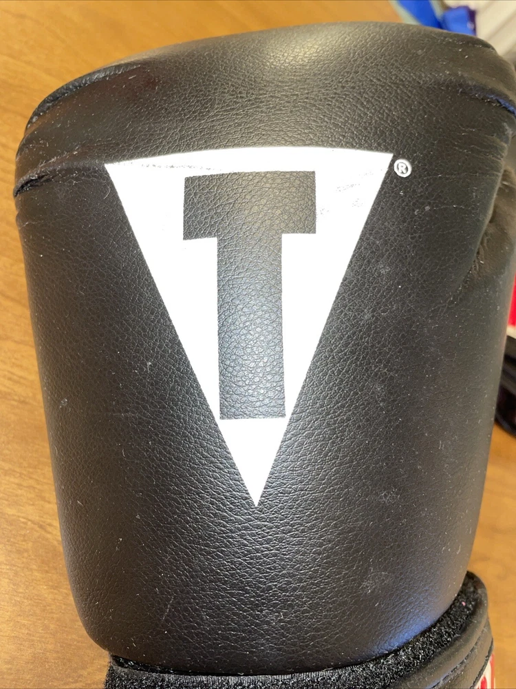 Please note, inside of left glove has a worn spot where inner stuffing is exposed. See photos for details. Title Classic Training Boxing Gloves in black and red, size L, are a well-worn pair that promise to deliver both style and comfort to your boxing sessions. Crafted with care in Pakistan, these gloves are designed for adult unisex use and feature a sturdy 14 oz. weight that's ideal for sparring or heavy bag workouts. The gloves come from the renowned Title Classics brand, known for their quality and durability. With a unit quantity of one pair, they are perfect for boxers looking for a reliable training companion. The gloves' sleek black color with red accents not only look sharp but also offer the functionality and support you need in the ring or at the gym.