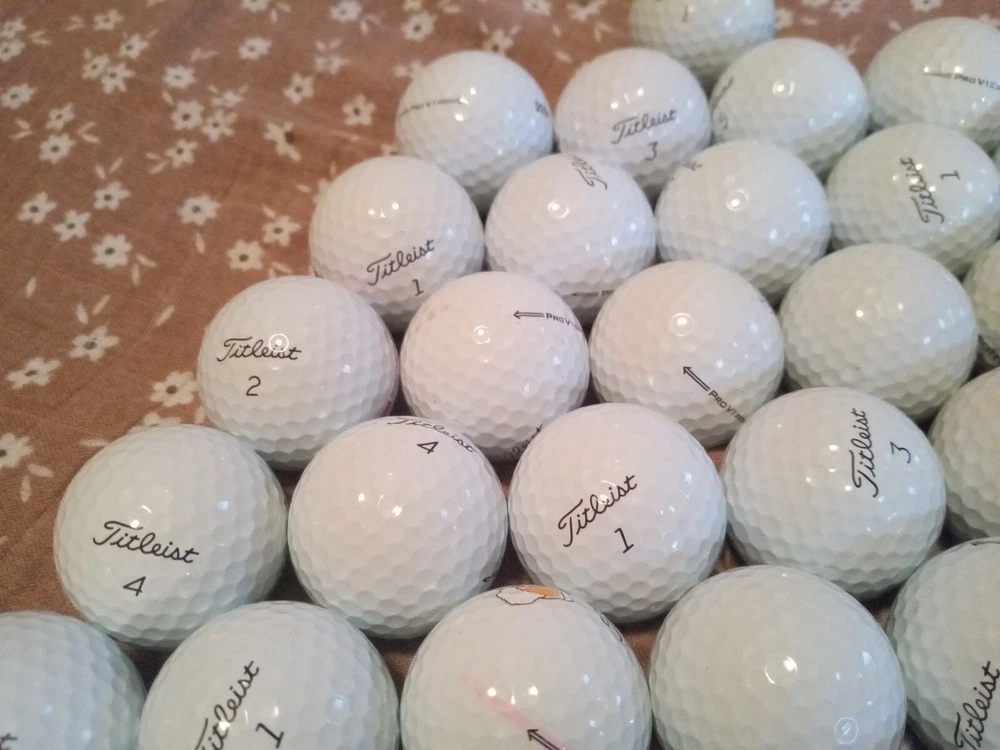 Up for auction is 37 Titleist golf balls Used Grade AAAAA I xxtra for good luck (37 instead of 3 dozen) Most probably hit 2 or 3 times. Many look new No writing..no cuts or scuffs Wored on course later in life bag drop Guy etc.. Moved to mountains now and need to clear my golf balls oulisting some AAAA and a few..AAA too There is 3 or 4 logo balls but no writing Balls 2021/2022 mostly Other golf balls listed Low prices Calloway as well Happy Golfing