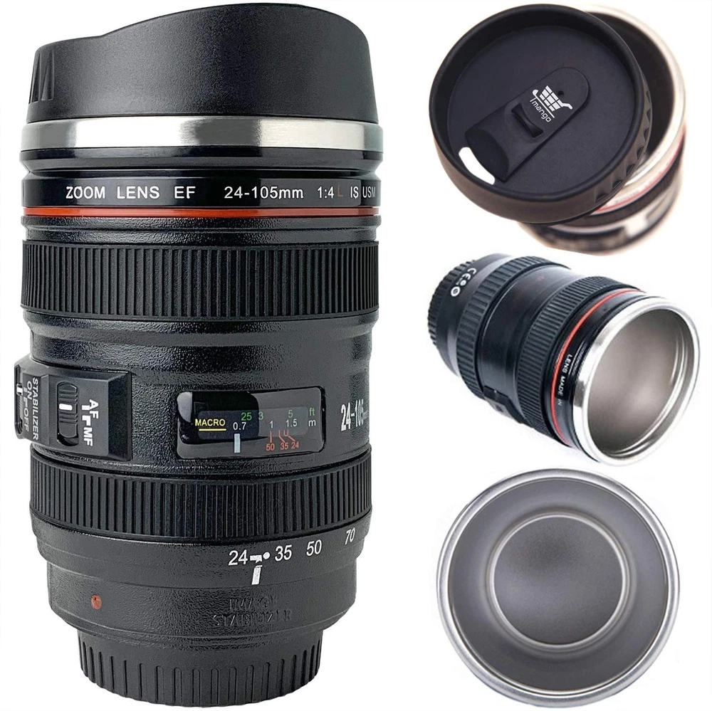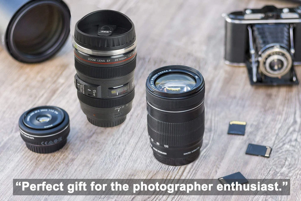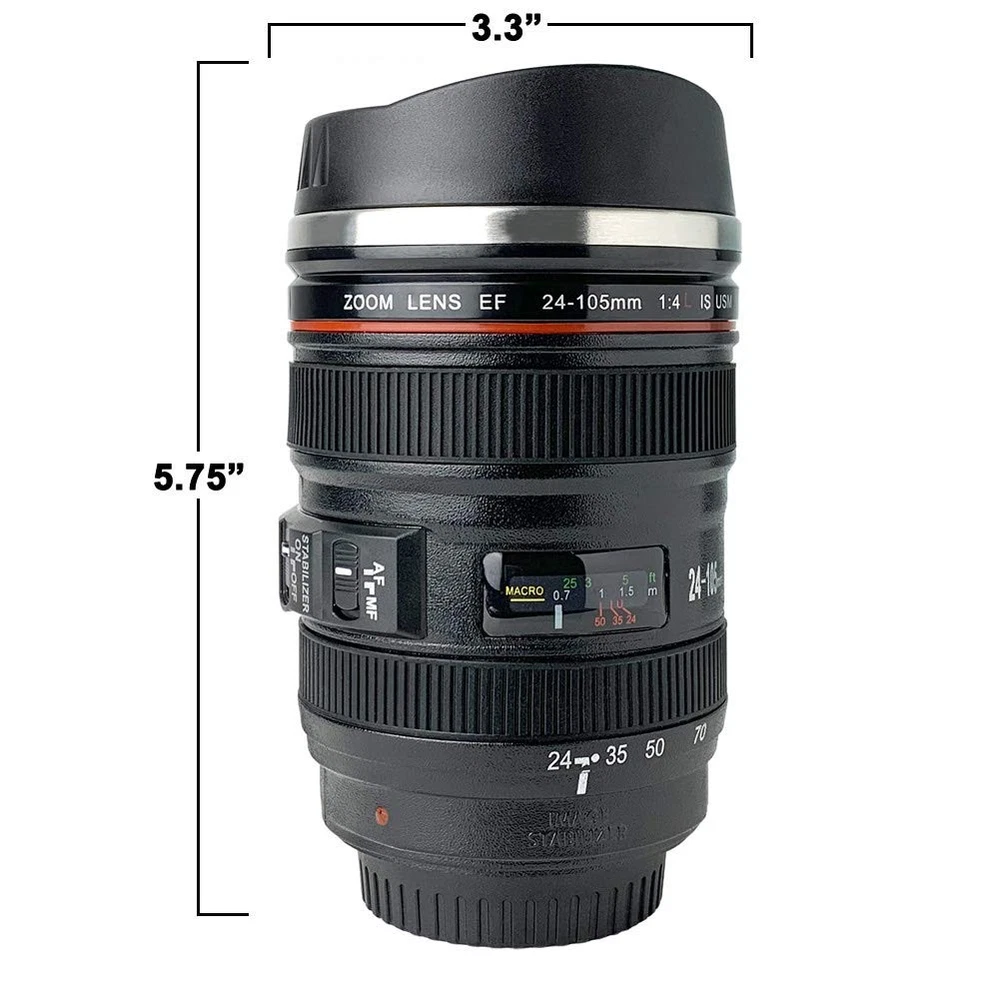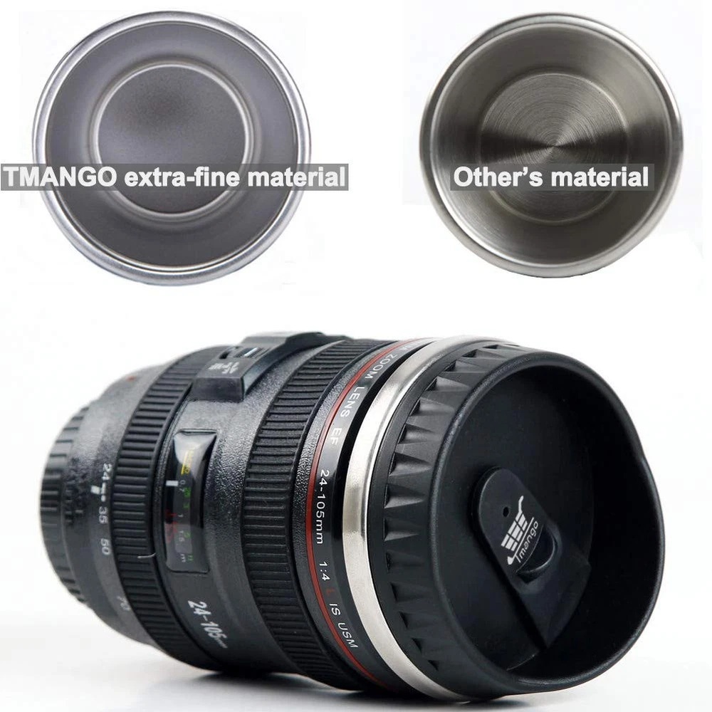 📷Artistic Fusion of Photography and Coffee: The TMANGO lens coffee mug seamlessly blends the art of photography with the joy of coffee, allowing enthusiasts to enjoy both creativity and their favorite beverage. 📷Premium Design and Materials: features outstanding insulation, a stylish BPA-free ABS exterior, and a durable stainless steel interior. With a 13.5 oz (400 ml) capacity, it offers both functionality and creativity. ☕Versatile Companion: Whether you're on a business trip, at a social event, or working at your desk, this camera lens-shaped mug brings creativity and uniqueness to every coffee or tea moment. 💡Multifunctional and Imaginative: More than just a coffee mug, this versatile design doubles as a pen holder, coin jar, or even a unique vase, inspiring creativity and imagination. 🎁Lifelike Camera Lens Cup: Designed as a replica of the iconic EF 24-105mm lens, this lifelike mug makes a perfect gift for Valentine's Day, Mother's Day, or Father's Day. Ideal for photographers, filmmakers, and videographers, it’s a creative and unique photography-themed gift.