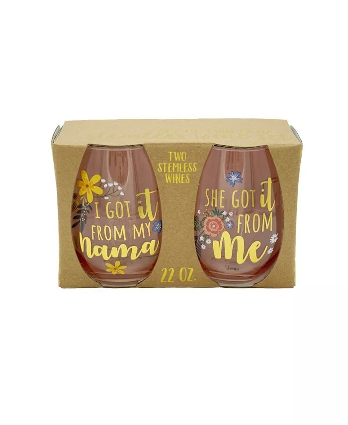 This set of wine sets is too cute not to get! You got it from your mama and she got this gift set from you for you to bond and have some wine with her. Perfect for your favorite beverage. Stemless wine glass dimensions - 5.5" L x 6" W x 4" H Stemless wine glass weight - 1.01 lbs Stemless wine glass holds - 22 oz Set includes - 2 wine glasses Great gift set for mom Fun floral design For mom and daughter Asian American & Pacific Islander Owned Glass Hand Wash Imported