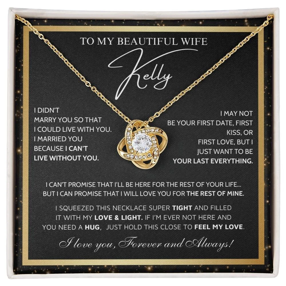Imagine their reaction when they open this stunning gift! Love Knot Necklace features a petite ribbon-shaped pendant that is sure to dazzle your special someone. Whether it's a birthday or anniversary, make sure to get them a gift they will love for years to come. Product specifications: 14k white gold finish or 18k yellow gold finish over stainless steel 7mm cubic zirconia Pendant dimensions: 0.8" (20mm) height 0.4" (10mm) width Adjustable length: 18" - 22" (45.72 cm - 55.88 cm) Lobster clasp Product care instructions Keep your buyers informed on how to keep their products in tip-top shape for a long time Remove when bathing Avoid abrasives Avoid perfume Jewelry box Wipe with a soft cloth