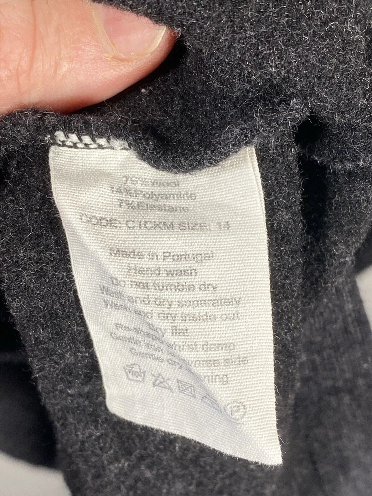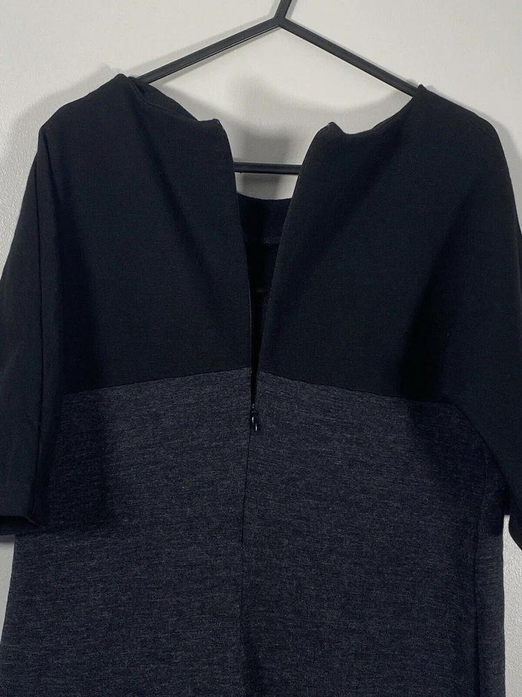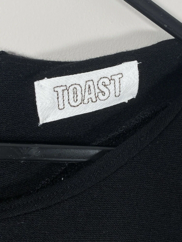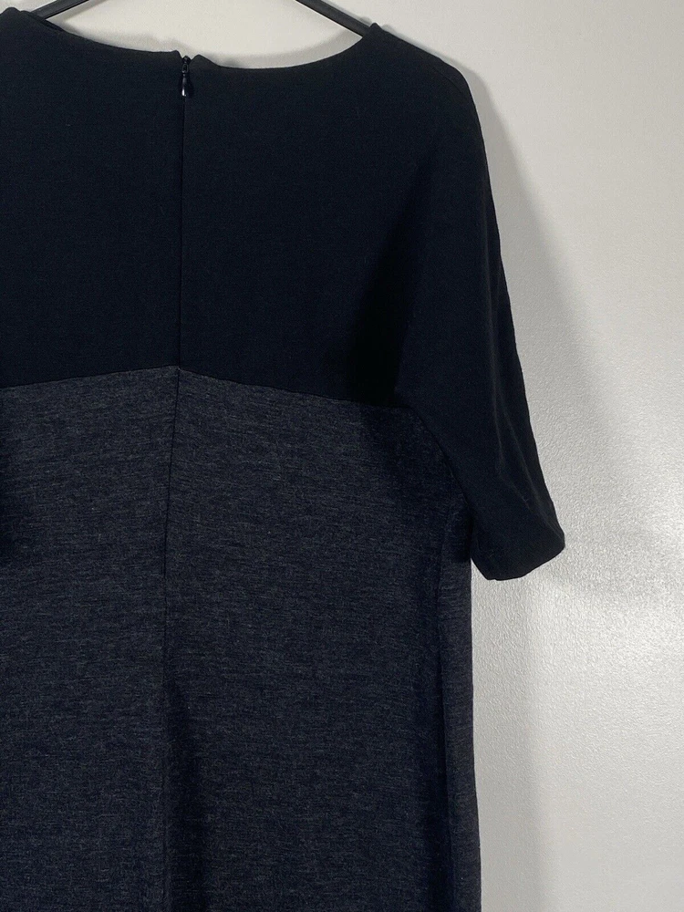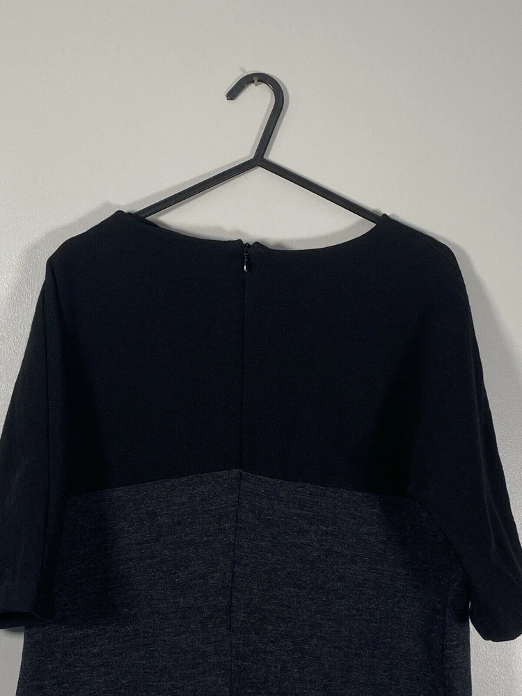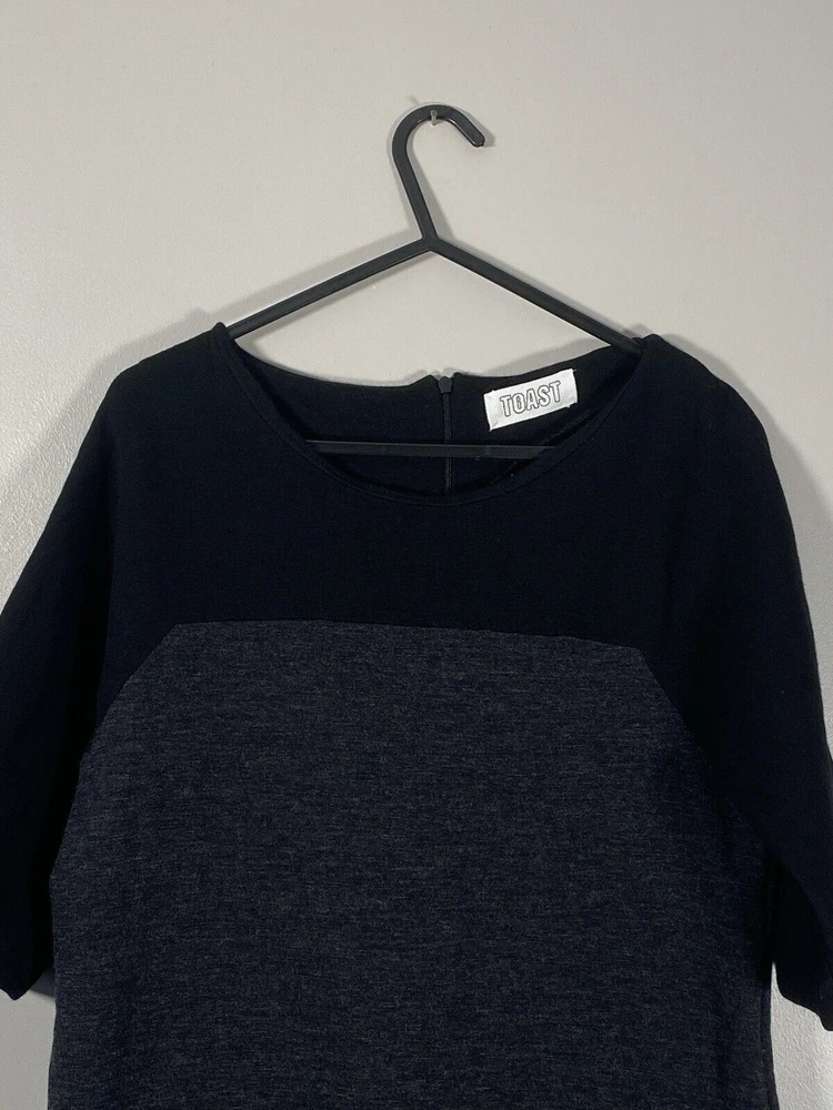 This stunning Toast midi dress in black and grey is made from a soft wool blend and features a unique colourblock pattern. The boat neck and asymmetrical half sleeve add a touch of elegance to this fitted bodycon tunic. The dress is easy to wear with a zip closure and stretch fabric, making it perfect for any occasion, be it a wedding, holy communion, party, casual outing, or formal business event. The dress has been crafted with care and features button accents and the Toast logo. The quality is reflected in the dress's design. The dress is easy to maintain with hand wash only care instructions. This size 10 regular dress is perfect for any woman looking for a stylish and comfortable outfit. Please compare the below measurements to your favourite dress to ensure the best fit. Pit to pit - 17 inches Chest - 33 inches Waist - 34 inches Hips - 37 inches Length - 40 inches I look forward to sending it to you.