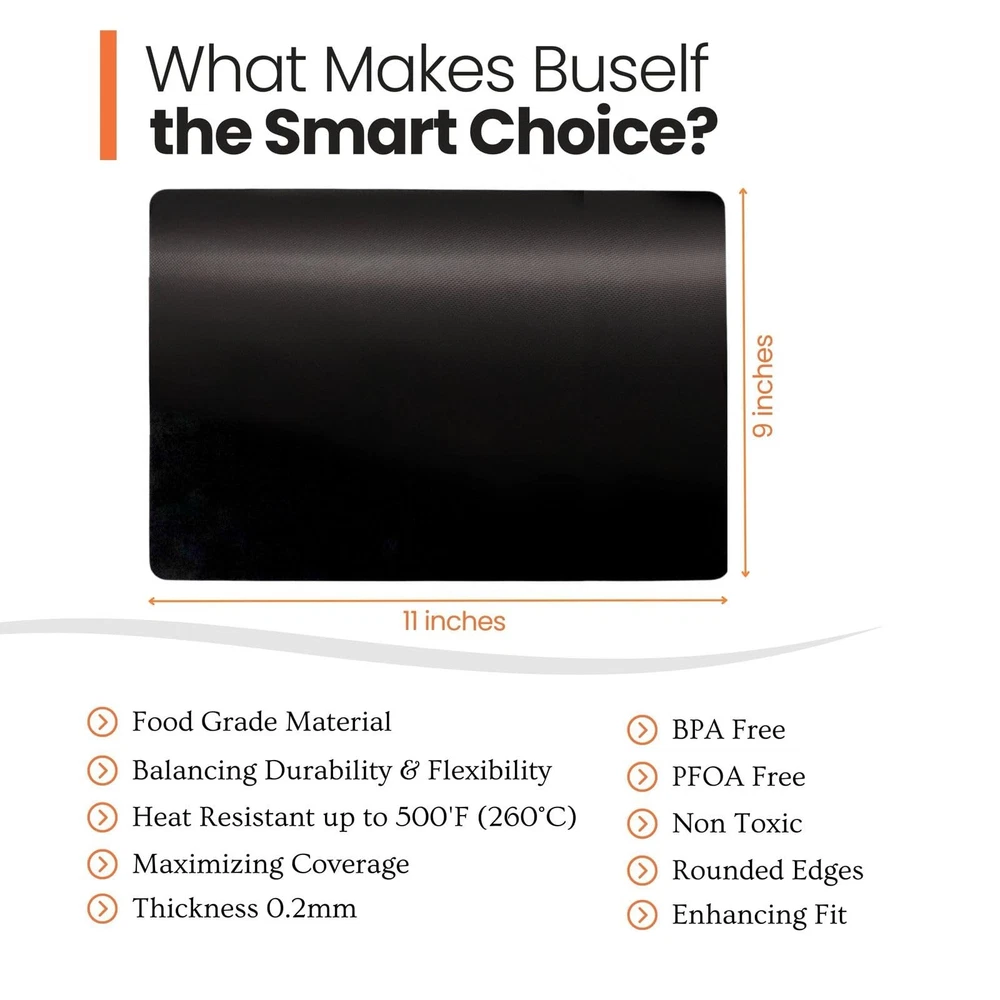 Discover the versatility and efficiency of the Toaster Oven Liner, your ultimate kitchen companion. Designed for diverse cooking environments, this product functions seamlessly as an air fryer oven liner, toaster oven tray, and crumb catcher. It is compatible with devices from brands like Breville, Black & Decker, Dash, Oster, and Ninja Foodi. Constructed from high-quality, double-sided nonstick PTFE-coated fiberglass, our toaster oven liners are perfect for preventing messes in your cooking appliances. Whether you're using a Breville Mini Smart Oven, a compatible Black & Decker toaster oven, or a Kalorik air fryer, these liners help capture spills efficiently to keep your appliance clean. These liners are not just for toasters and air fryers; they also serve as excellent replacement or drip trays in models such as the Emeril Lagasse air fryer or the Oster toaster oven. Their heat-resistant properties make them safe for use up to 500°F, ensuring they can handle everything from light toasting to high-heat roasting. Our liners are designed to fit a range of sizes and models, making them a perfect addition to your kitchen accessories. Easily trimmed to fit any toaster oven—including compatible versions of the Ninja Foodi crumb tray and Dash toaster oven—they ensure a tailored fit. Easy to clean and maintain, these liners are a must-have for anyone looking to keep their kitchen appliances pristine. Simply wipe them clean or toss them in the dishwasher after use. Say goodbye to tough, baked-on messes and welcome a cleaner, more efficient kitchen. Choose Toaster Oven Liners for their functionality and broad compatibility. They are the perfect blend of convenience and functionality, ideal for everyday kitchen tasks. Optimal Protection & Safety: Protect the bottom of your toaster oven or air fryer with our premium, heavy-duty toaster oven liners that catch spills and prevent odors. Designed with rounded corners to enhance safety and handling High Heat Resistance & Quality: Made from double-sided nonstick PTFE-coated fiberglass, our liners can withstand temperatures up to 500°F, making them perfect for high-heat cooking and baking Eco-Friendly & Economical: Reusable and dishwasher safe, these liners offer a sustainable alternative to single-use aluminum foils and reduce the need for cleaning chemicals Versatile Use: Not just for toaster ovens and air fryers; use them as a baking mat or even under grilling foods to make cleanup a breeze Custom Fit for Convenience: Easily trimmed to fit any standard toaster oven or air fryer, including popular models from brands such as Breville (including TOA-60, TOA-65), Cuisinart, Black & Decker, Hamilton Beach, Cosori, and Dash. These nonstick air fryer liners are ideal for everyday cooking and baking, helping you keep your kitchen clean and mess-free. For best results, measure your appliance before purchasing to ensure the perfect fit.