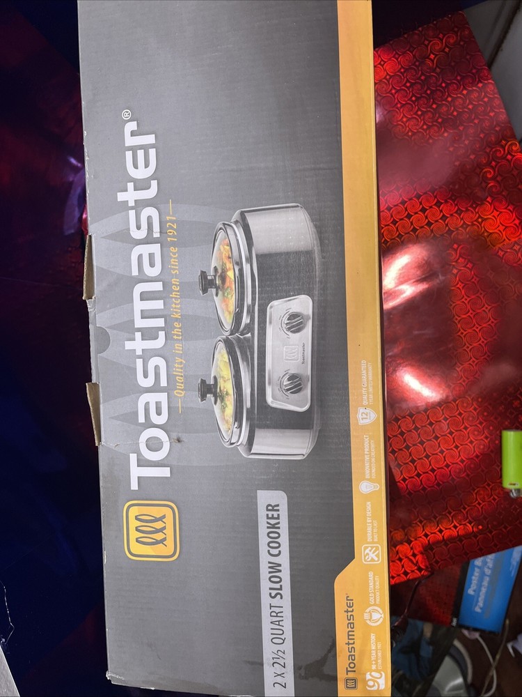 The Toastmaster TM-225BS Slow Cooker offers double cooking versatility with two 2-2.5 quart pots. It features adjustable settings, an electric power source, and comes with a lid. This slow cooker is designed for home use and is manufactured in China. It includes a 1-year manufacturer warranty.